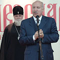 По окончании молебна церемония открытия была продолжена приветственными словами к гостям и участникам мероприятия, с обращением к присутствующим выступили владыка Вадим, губернатор Иркутской области Дмитрий Федорович Мезенцев, председатель Законодательного собрания Иркутской области Людмила Михайловна Берлина, президент группы предприятий «РЕСТЭК» Сергей Николаевич Трофимов.