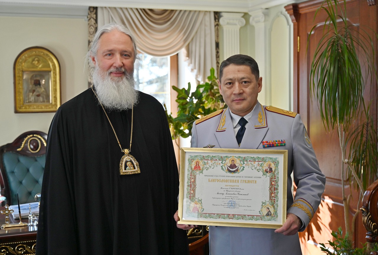 Вручая Благословенную грамоту генералу-лейтенанту Леониду Сагалакову, митрополит Максимилиан пожелал ему Божией помощи в труд...