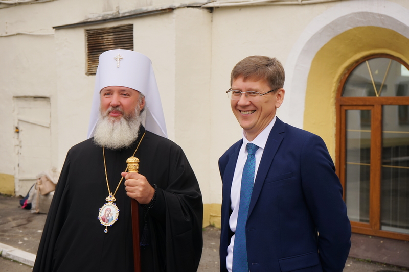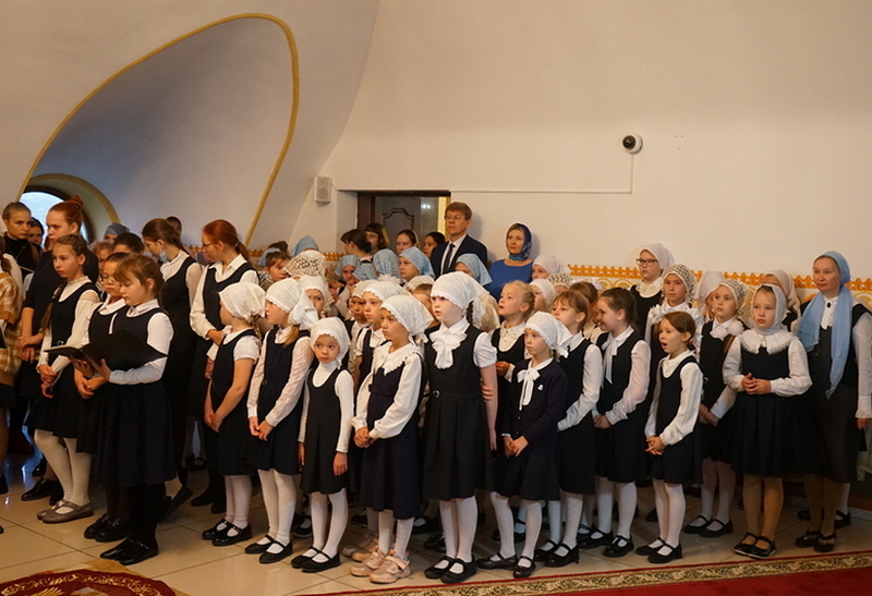 С этого года наш гимназический домовый храм (который является главнейшей частью нашего православного центра) - действует постоянно. Настоятель этого храма, священник Сергий Новиков, в этом году несколько поменял свой статус. Теперь храм не просто наш гимназический домовый храм - он стал уже кафедральном храмом, потому что официальным настоятелем является владыка Максимилиан. А отец Сергий теперь ключарь. В итоге у нас теперь не только Божественные литургии совершаются по воскресеньям и в праздники, но у нас и вечерние богослужения начали проходить. Первое из богослужений в новом статусе храма прошло в самый важный для гимназии день - в Рождество Пресвятой Богородицы. В честь этого праздника названа и наша гимназия. Кстати, совершение богослужений в храме гимназии - это тоже часть образования.