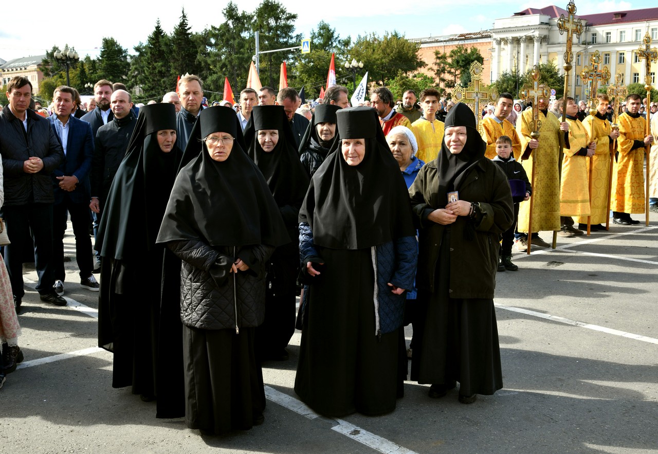 Молящихся приветствовали митрополит Иркутский и Ангарский Максимилиан, митрополит Томский и Асиновский Ростислав, Губернатор Иркутской области Игорь Иванович Кобзев, замГлавы ВРНС Сергей Юрьевич Рудов и председатель Фонда имени Иннокентия Сибирякова Дмитрий Николаевич Толоконников.