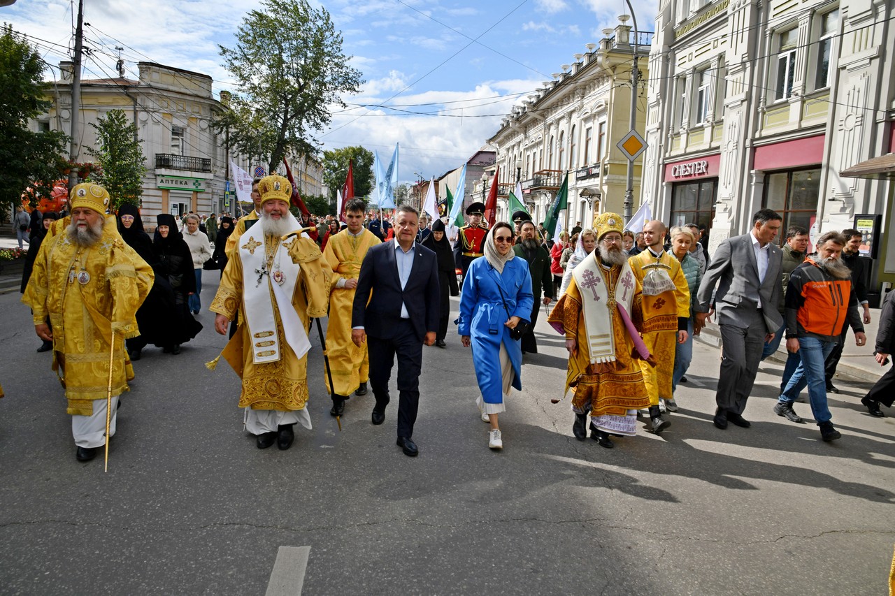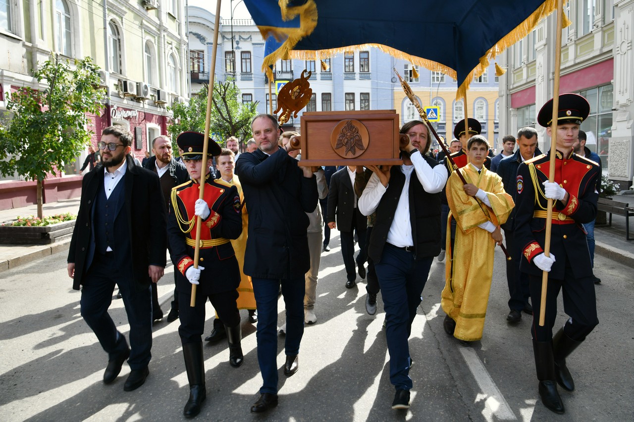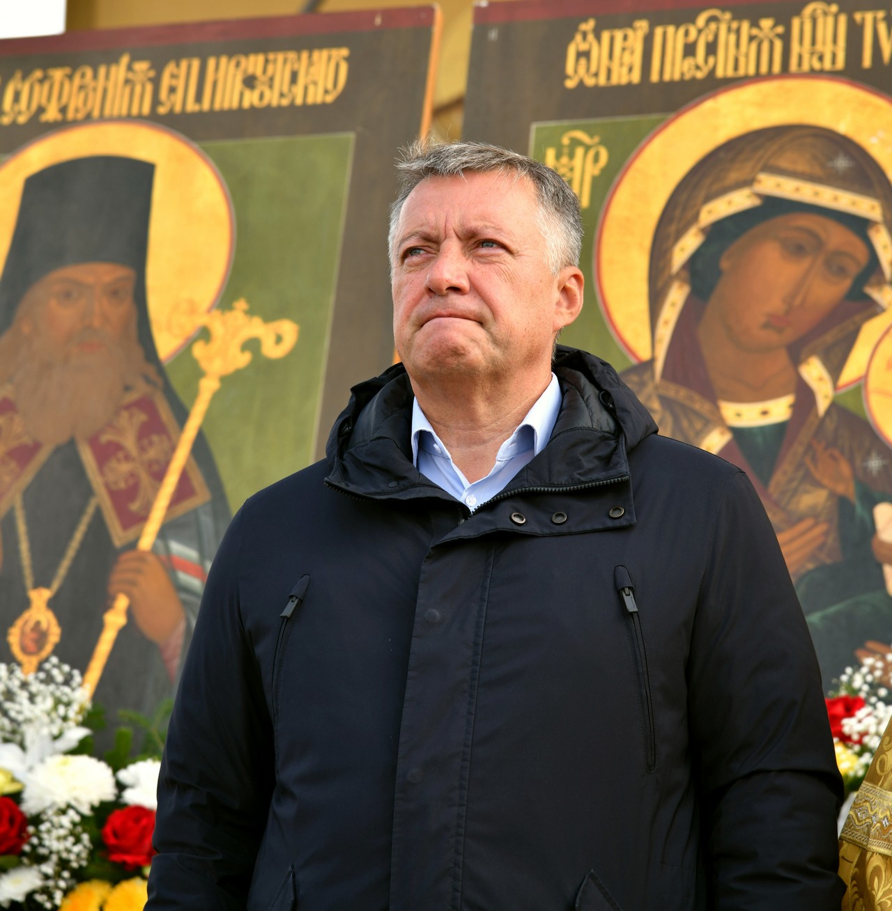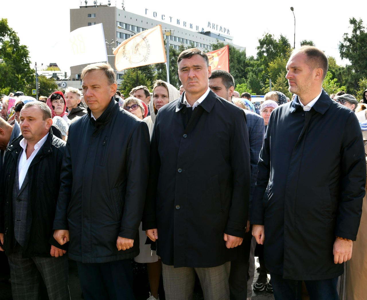 Губернатор Иркутской области Игорь Иванович Кобзев и мэр города Руслан Николаевич Болотов также несли раку с мощами Святителя на части пути крестного хода по завершении молебна.