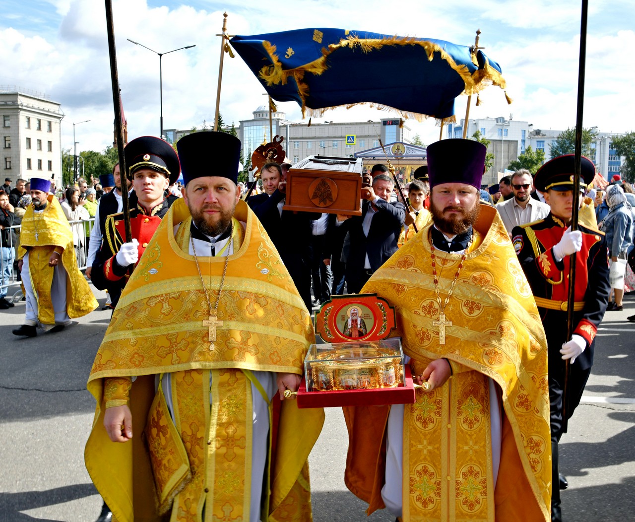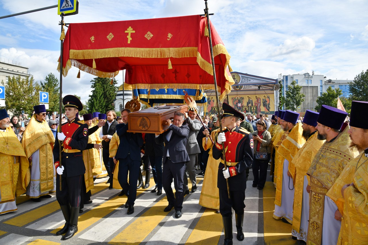 Торжественным крестным ходом к месту разрушенного в 1932 году Казанского кафедрального собора на площадь Сперанского 6 сентября 2025 года в Иркутске начались торжества в честь 35-летия Второго обретения мощей свт. Иннокентия (Кульчицкого), Первого епископа Иркутского, прибытия в город в рамках Общероссийского крестного хода ковчега с частицей мощей святителя Тихона, Патриарха Московского и всея России, и открытия региональных Дней духовности и культуры «Сияние России».
