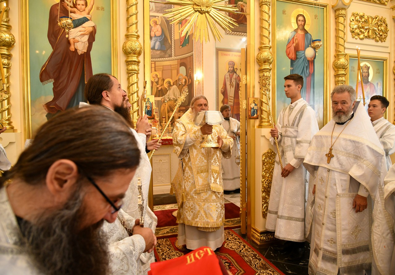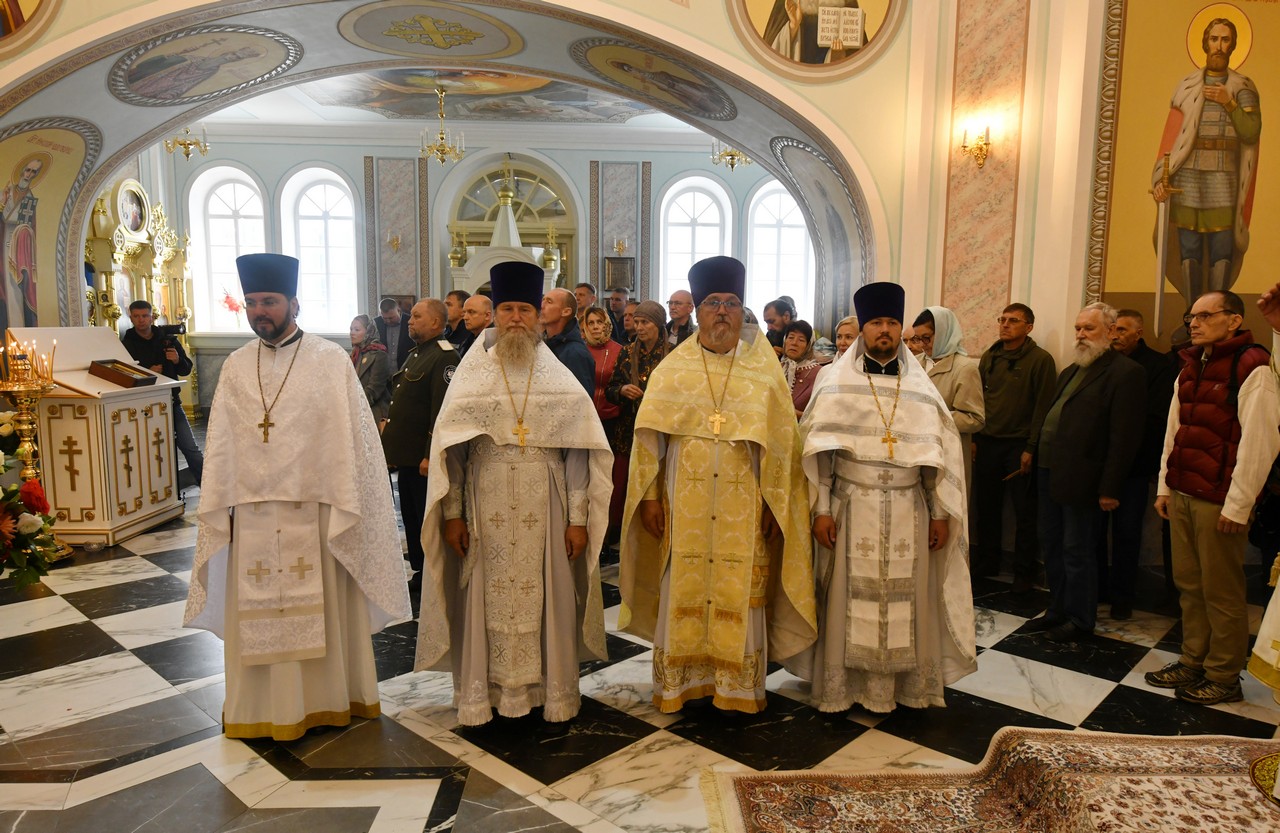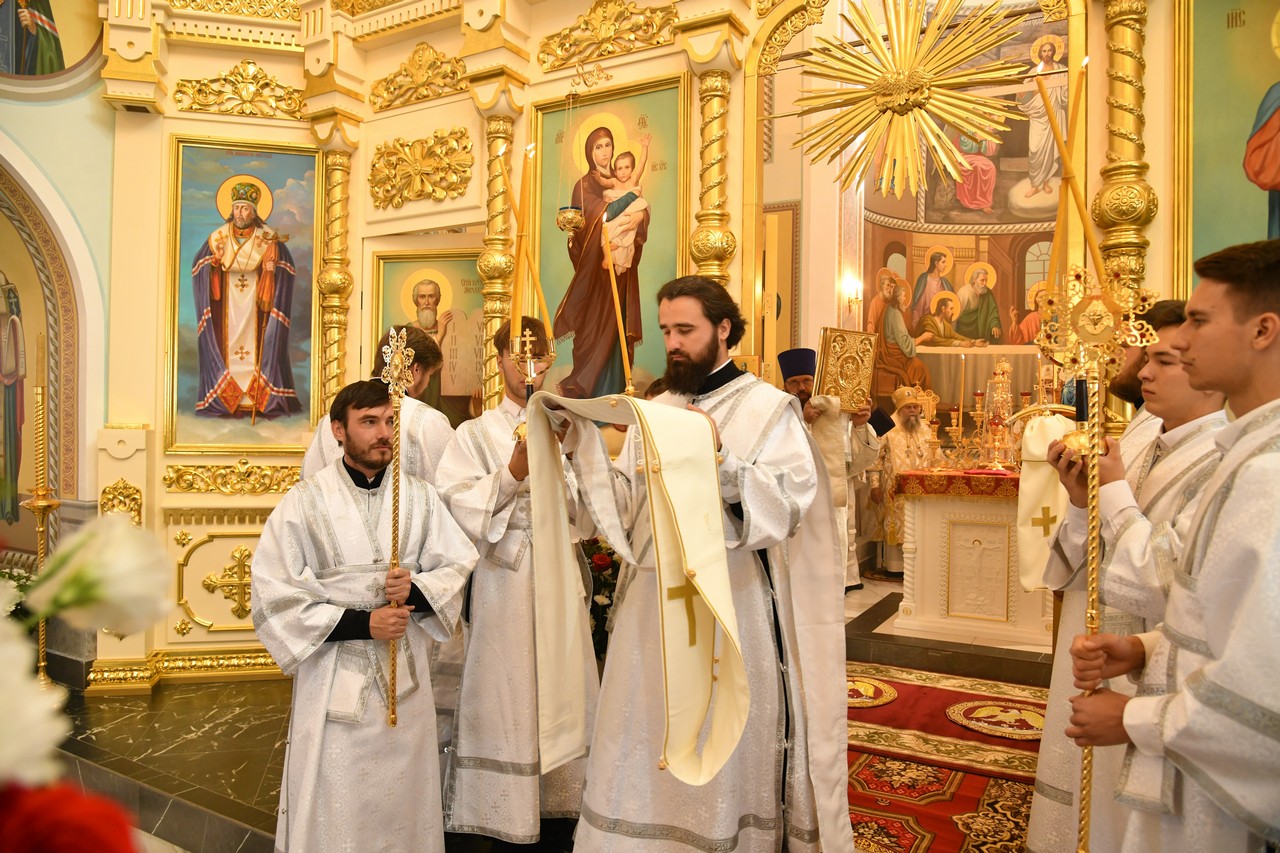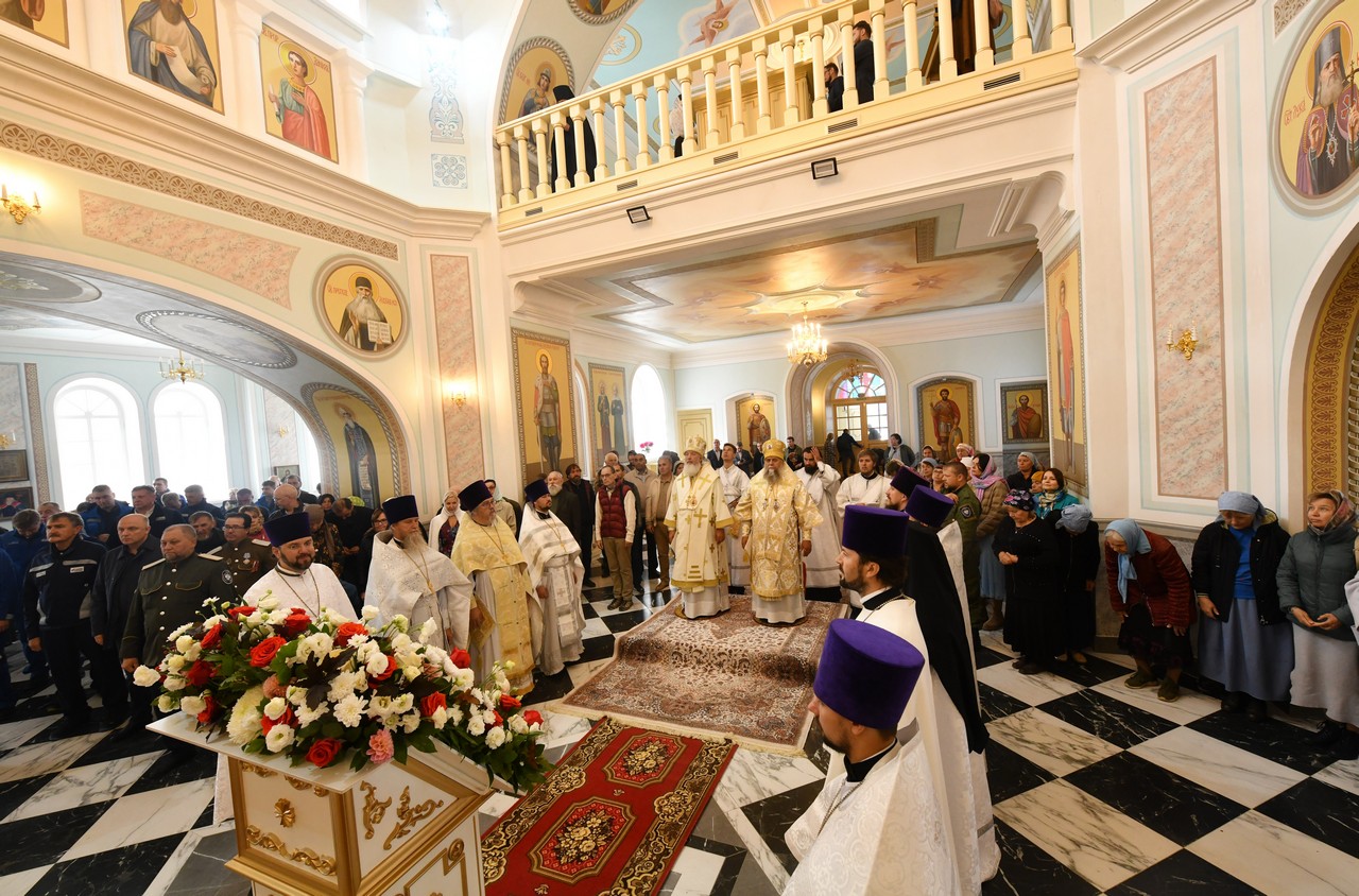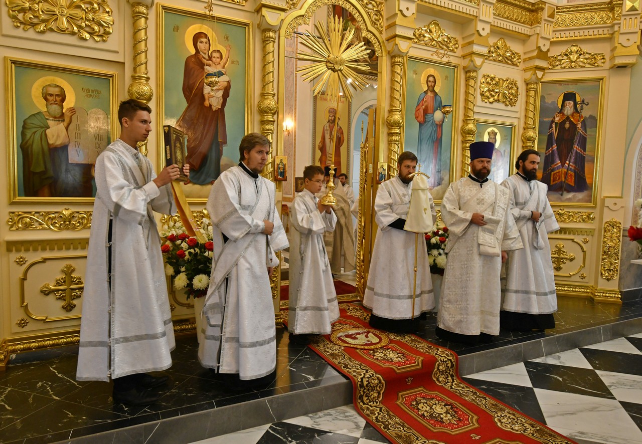В соборе три придела: главный во имя Воскресения Христова, правый в честь Казанской иконы Божией Матери и левый в честь святителей Николая, Тихона Задонского и Григория Богослова. Казанский придел был освящен в июле, а сегодня освятили главный Воскресенский придел и придел трех святителей.