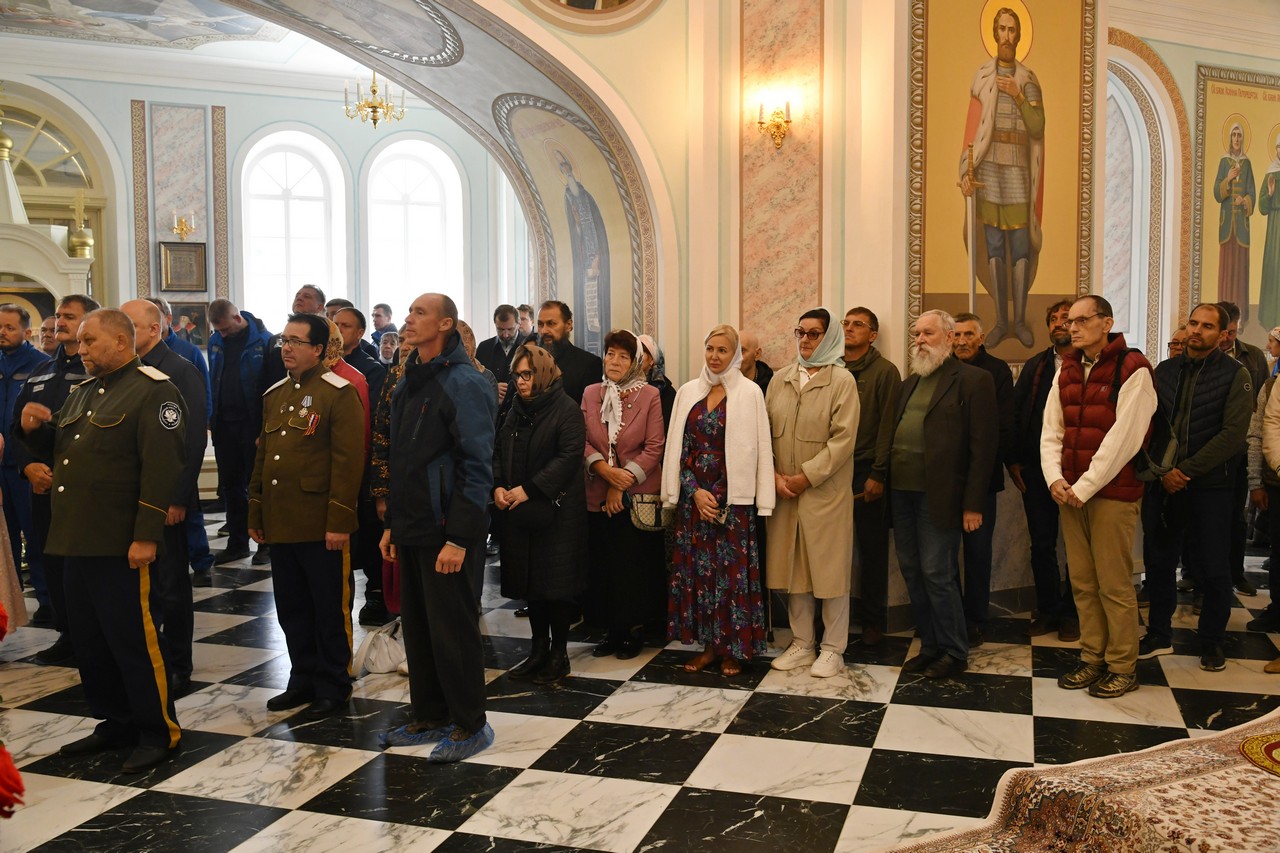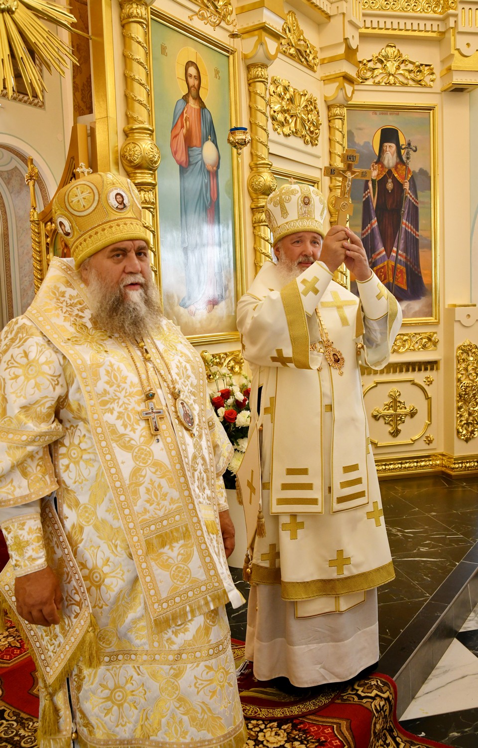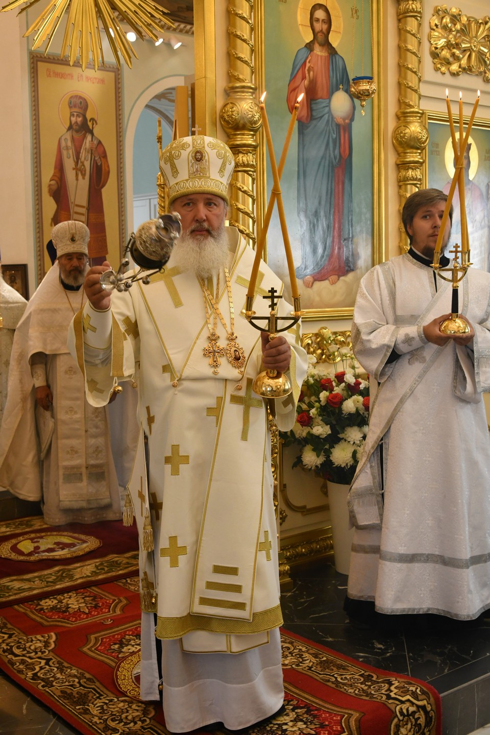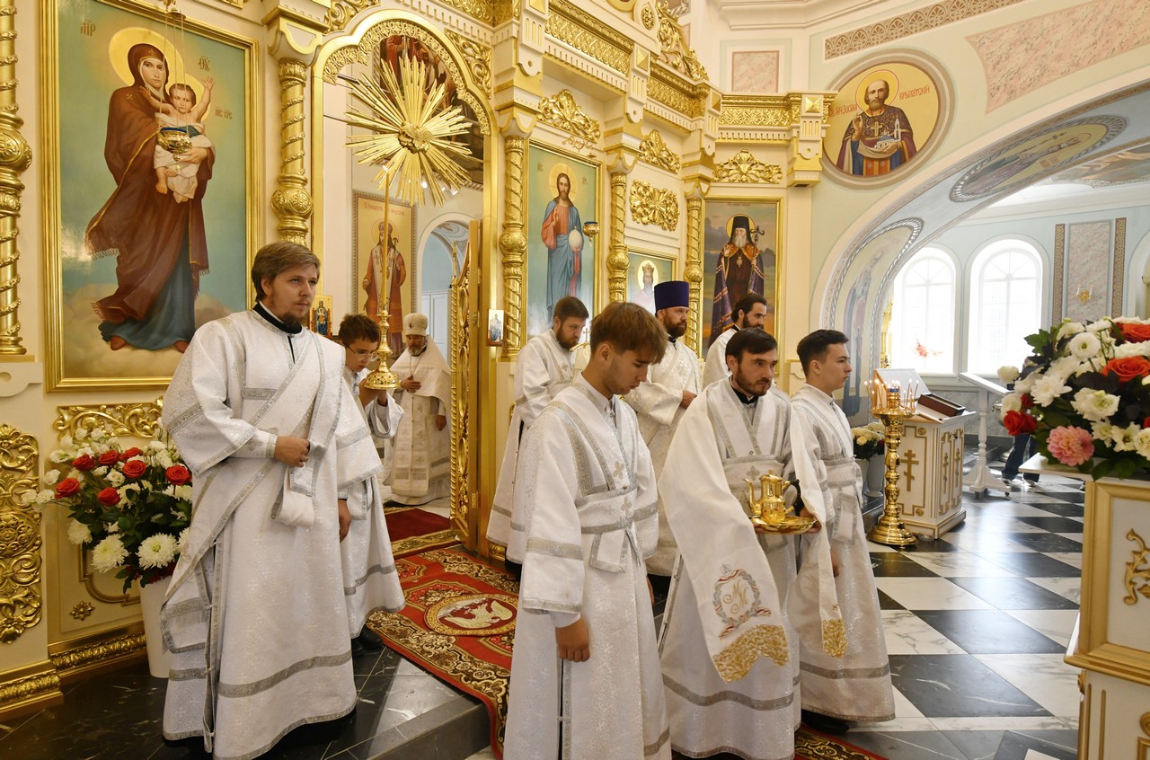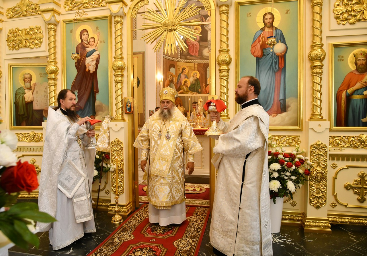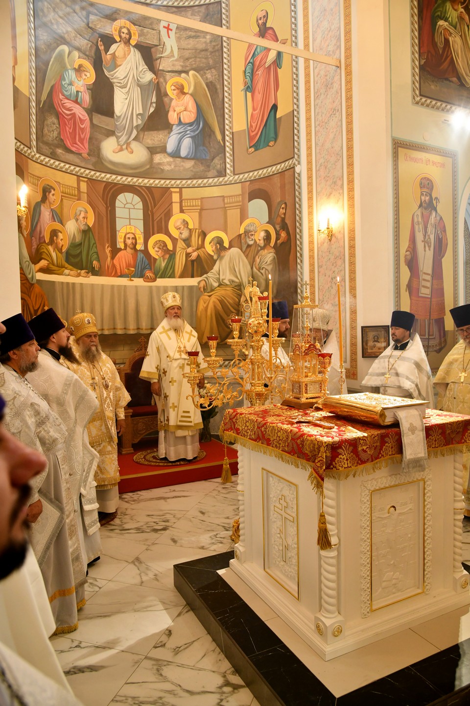 В соборе три придела: главный во имя Воскресения Христова, правый в честь Казанской иконы Божией Матери и левый в честь святителей Николая, Тихона Задонского и Григория Богослова. Казанский придел был освящен в июле, а сегодня освятили главный Воскресенский придел и придел трех святителей.