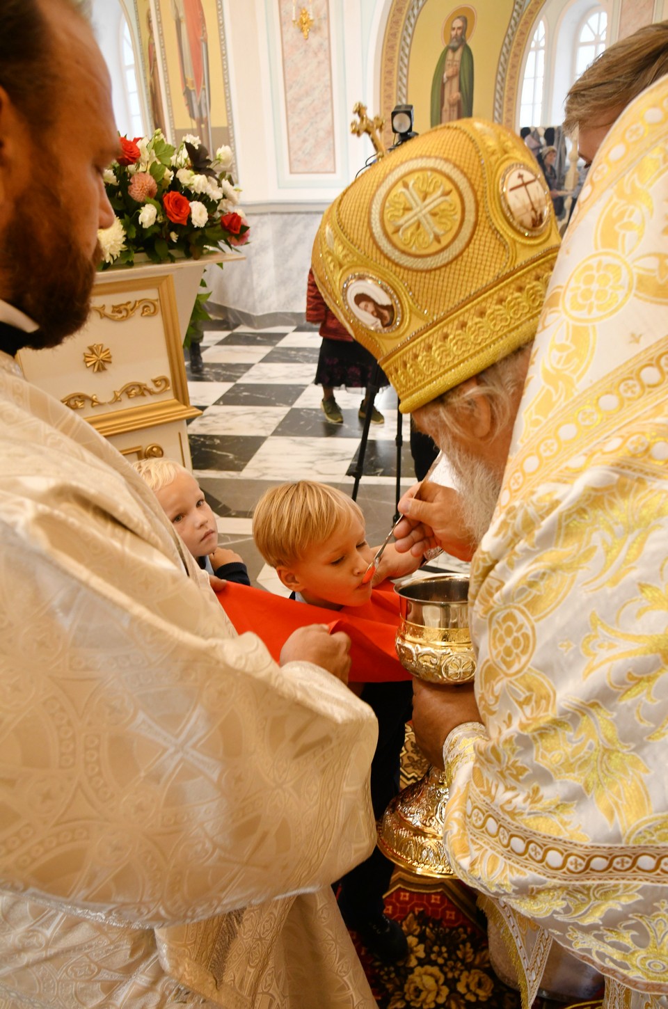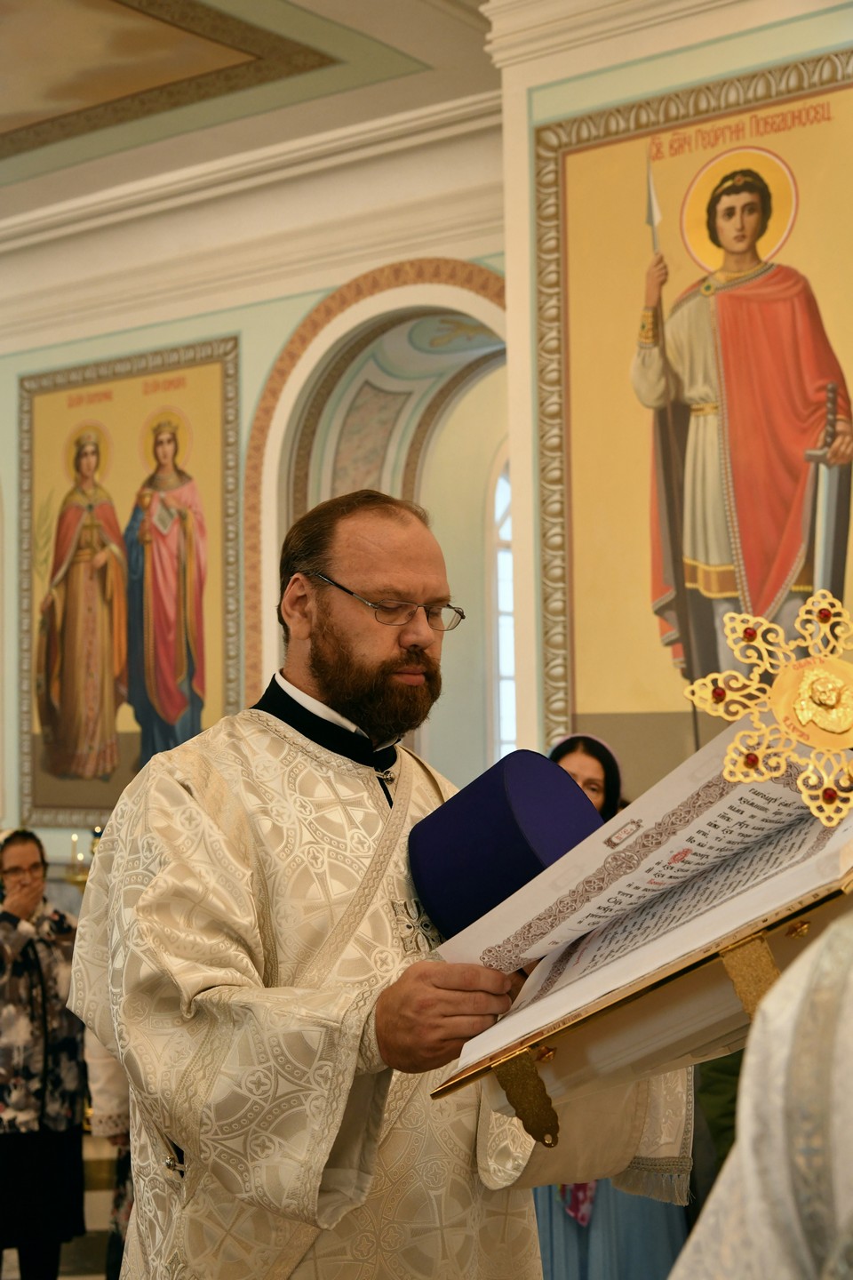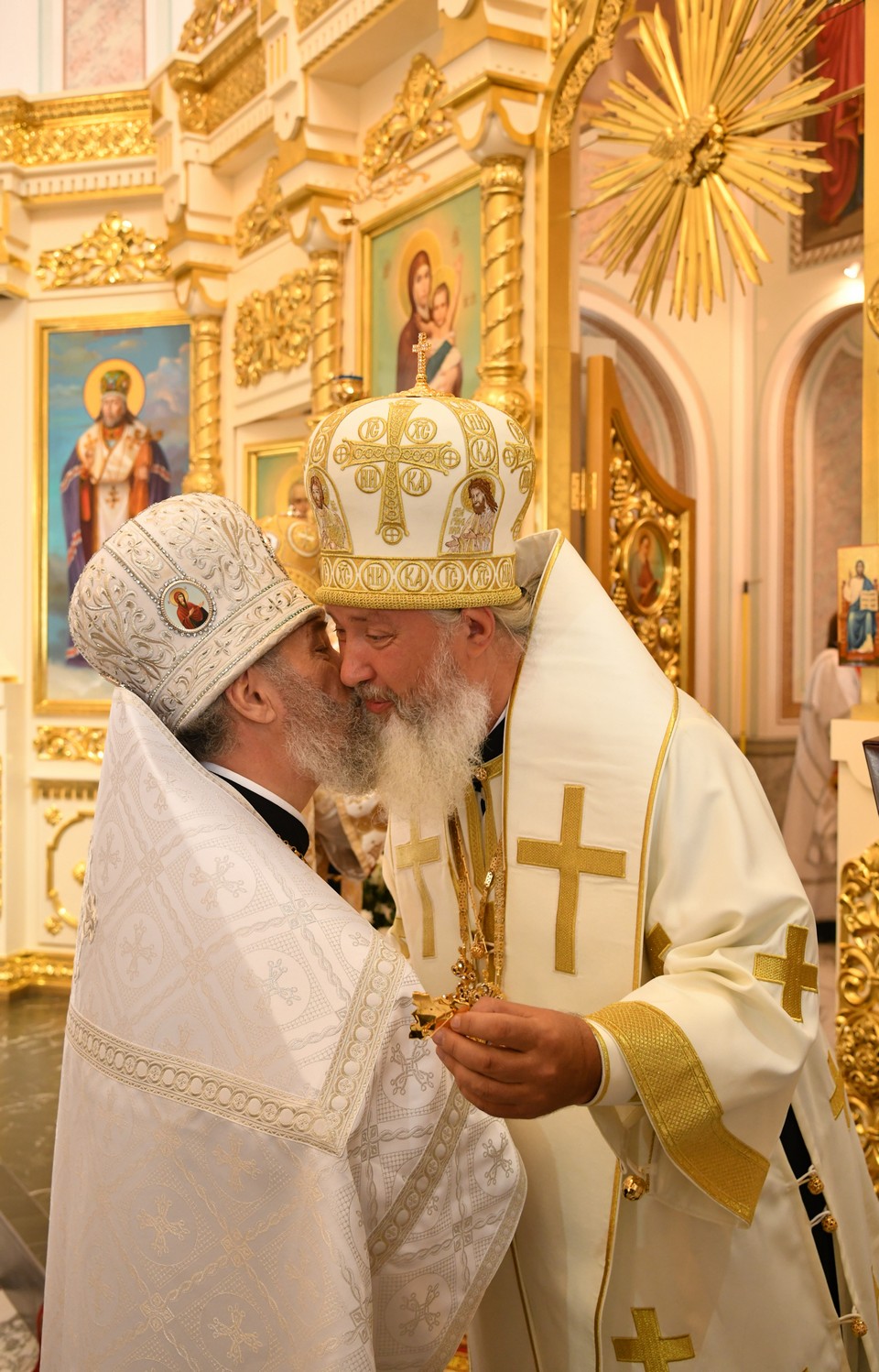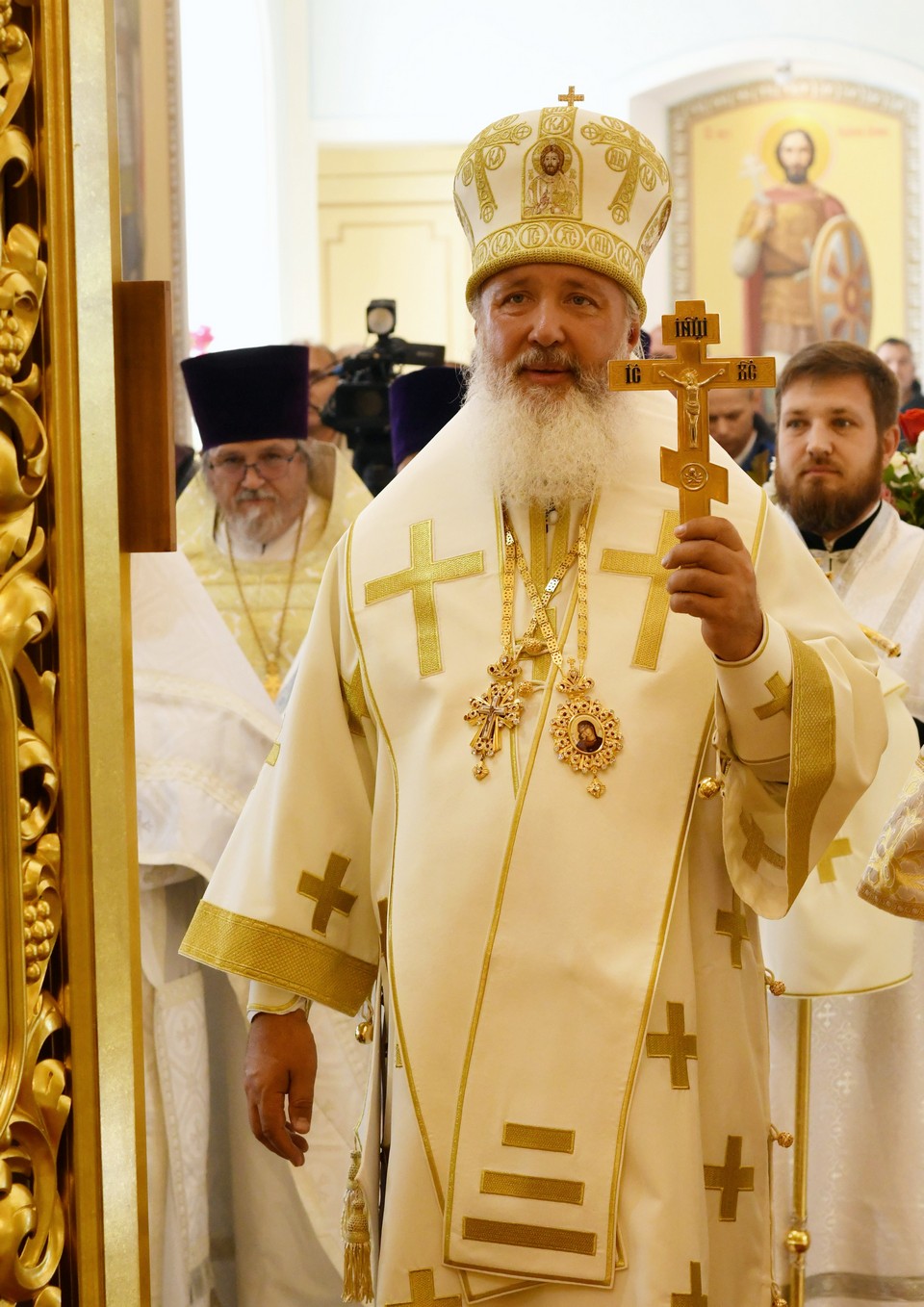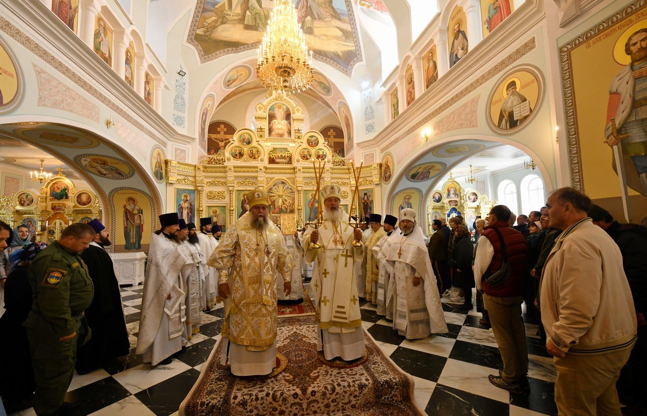 В соборе три придела: главный во имя Воскресения Христова, правый в честь Казанской иконы Божией Матери и левый в честь святителей Николая, Тихона Задонского и Григория Богослова. Казанский придел был освящен в июле, а сегодня освятили главный Воскресенский придел и придел трех святителей.