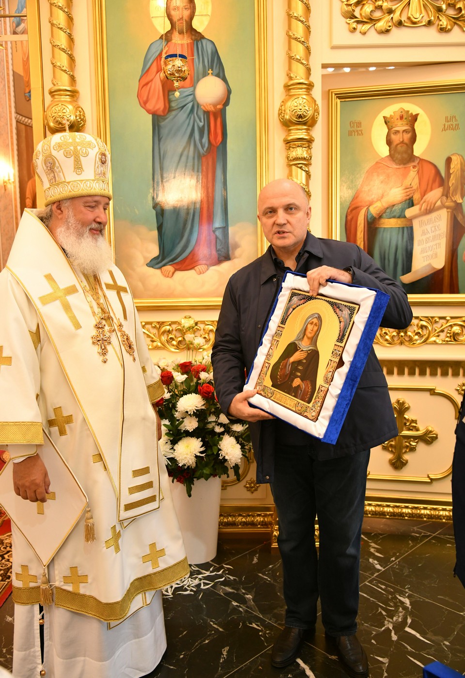 Руководители «Газпрома» также преподнесли в дар храму на молитвенную память подарки: от Алексея Борисовича Миллера, председателя правления ПАО «Газпром», заместителя председателя Совета директоров ПАО «Газпром» - отреставрированную икону 19 века «Вознесение Господне» и от всей команды представителей «Газпрома», принимавших участие в восстановлении собора - отреставрированную икону 19 века «Господь Вседержитель».