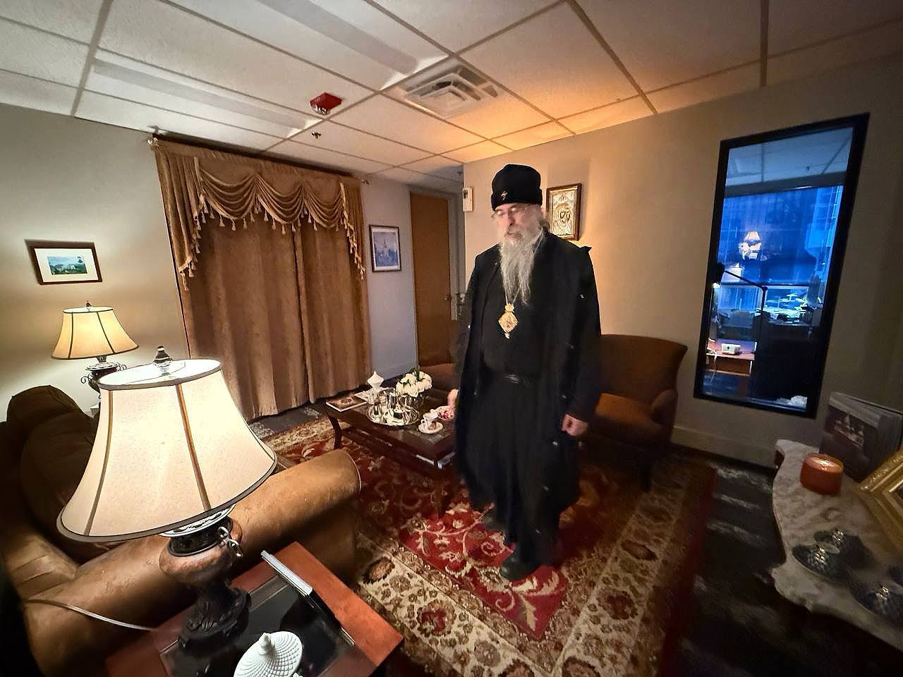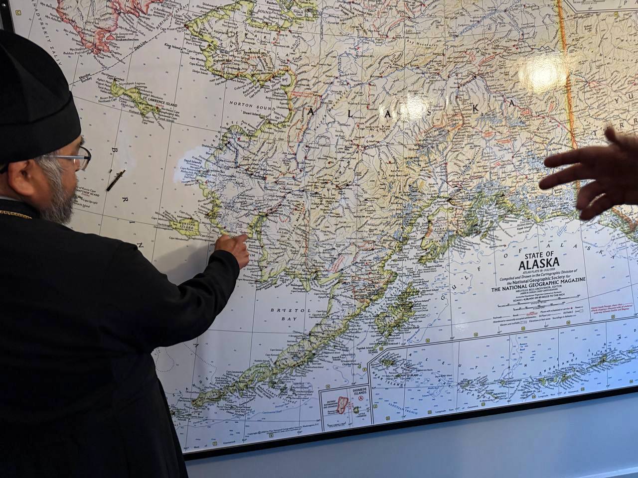 По прибытии в Анкоридж архиепископ Ситкинский и Аляскинский Алексий организовал для гостей подробную экскурсию по Епархиальной канцелярии, после чего показал им православные храмы города.