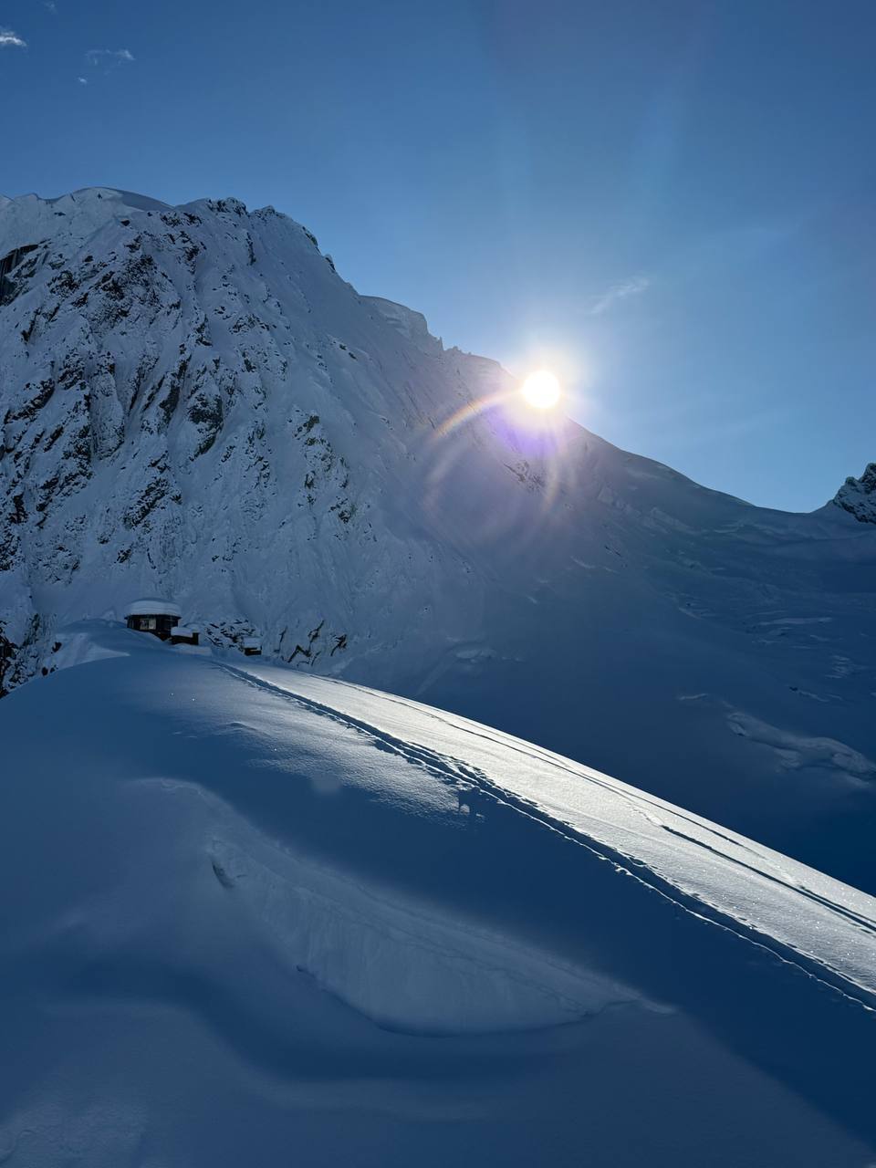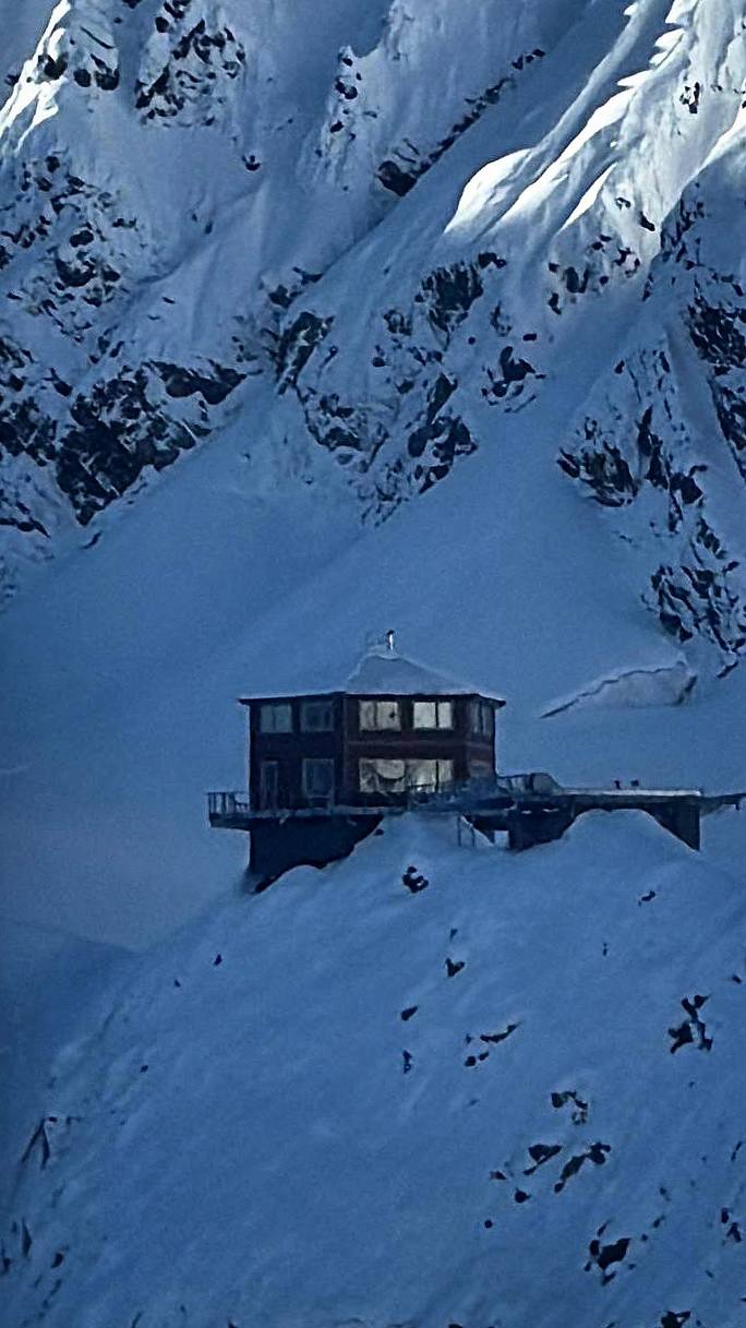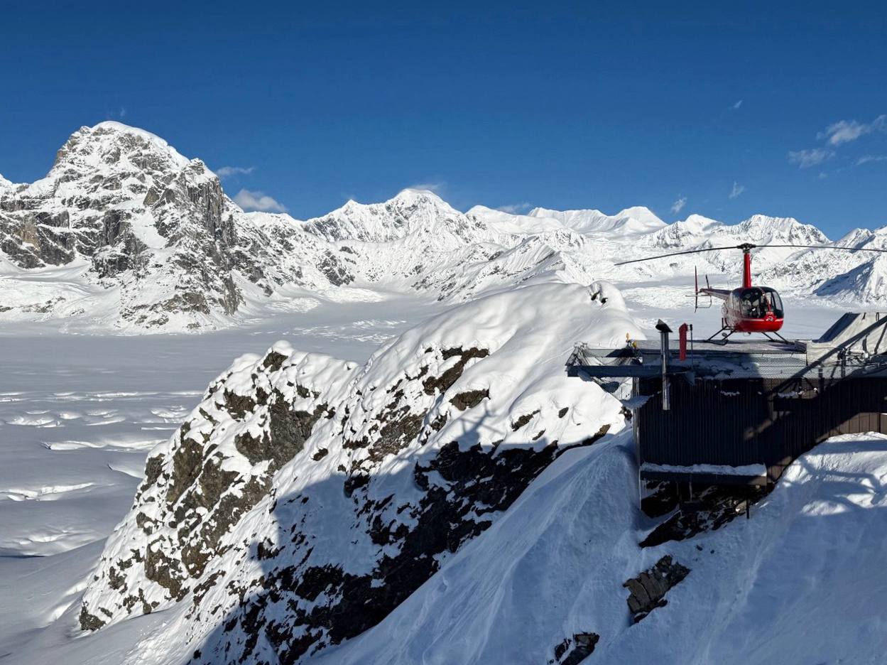 Подъем проходил на авиатакси - специальном небольшом самолете, который высадил путешественников на красивом плато, где есть уютный домик ожидания. Дальнейшее восхождение на вершину совершалось уже на вертолете.