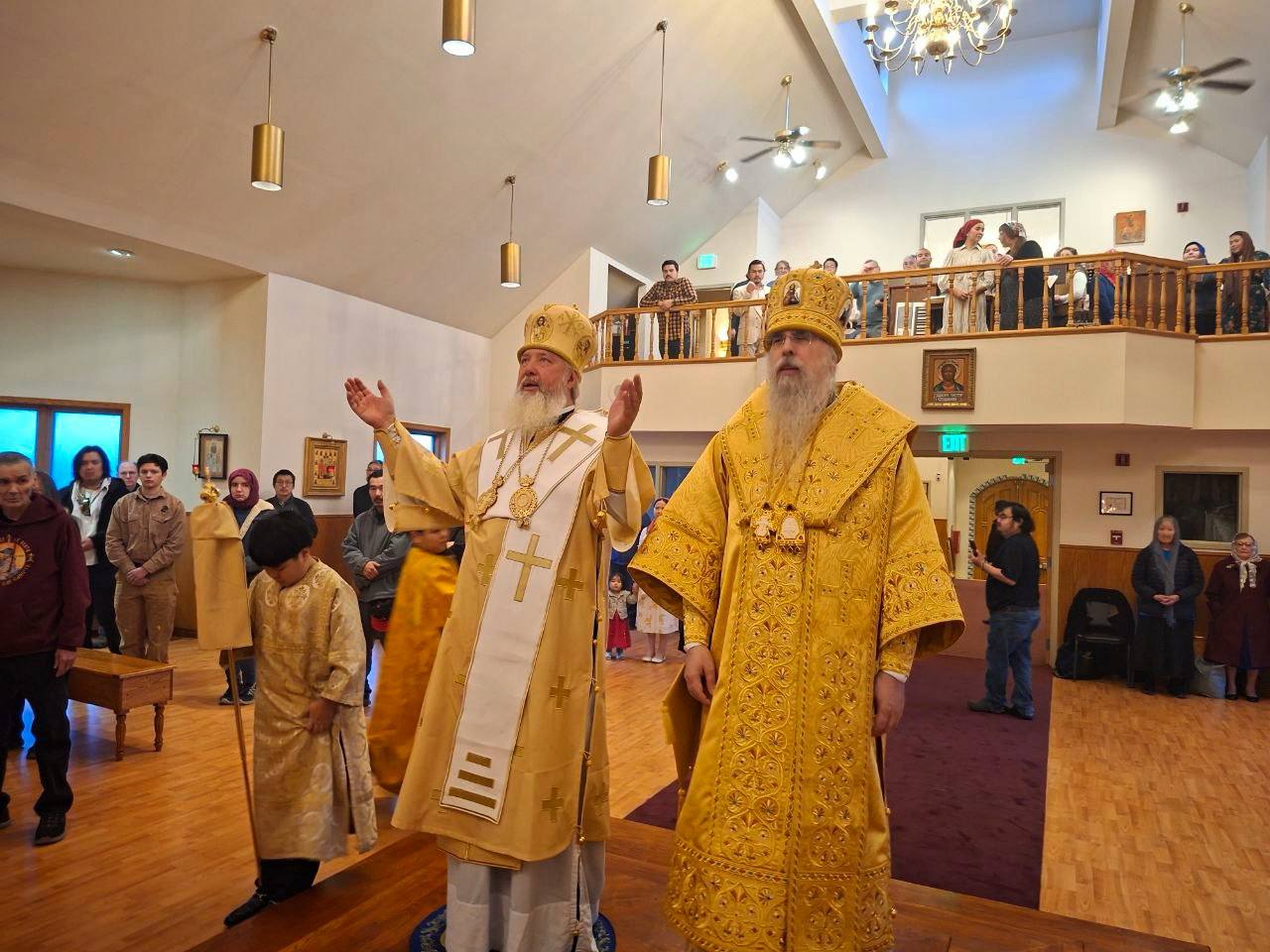 Субботнее всенощное бдение и Воскресную Божественную литургию митрополит Иркутский и Ангарский Максимилиан и архиепископ Ситкинский и Аляскинский Алексий торжественно совершили в кафедральном соборе святителя Иннокентия Иркутского в Анкоридже.