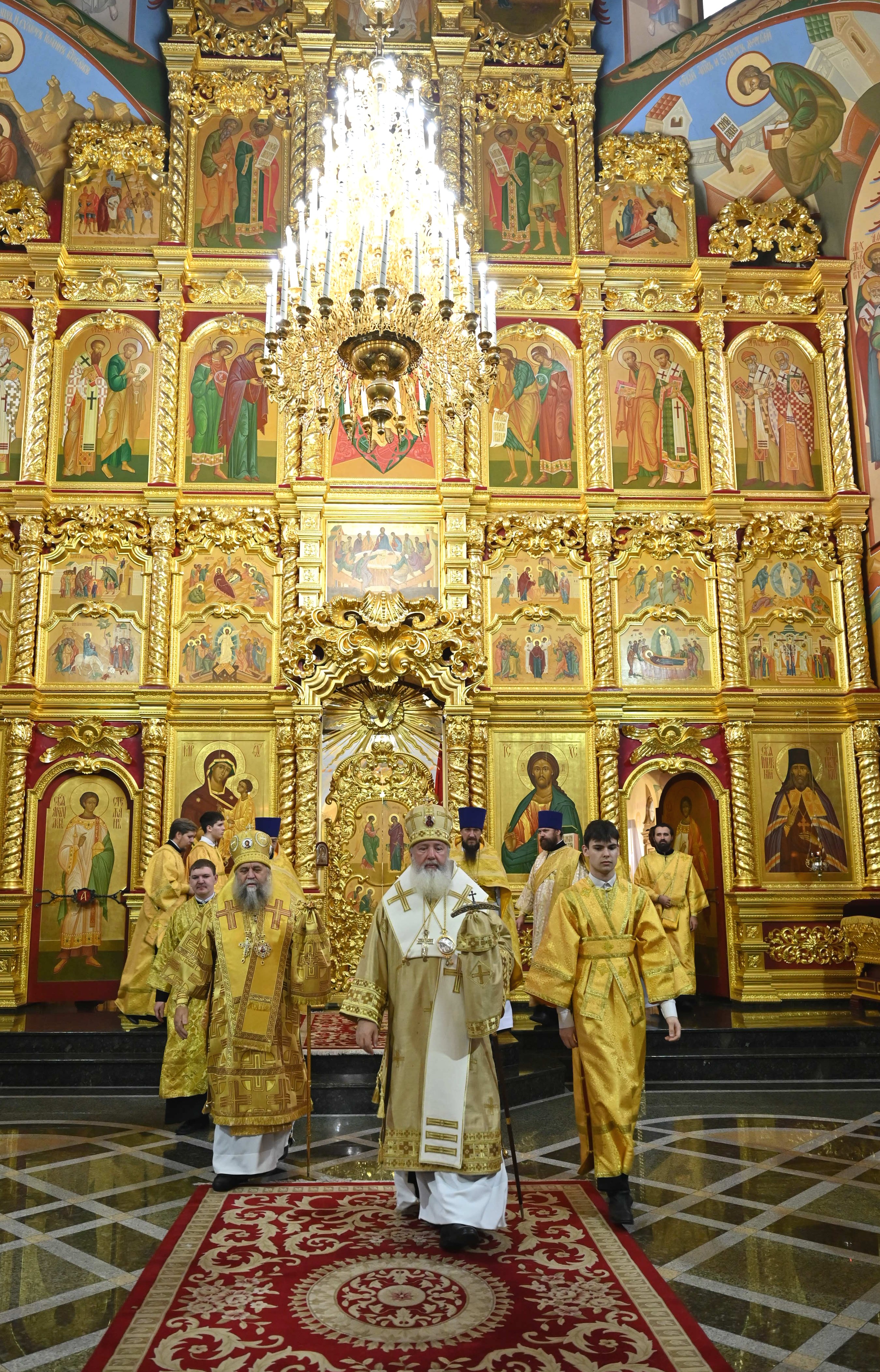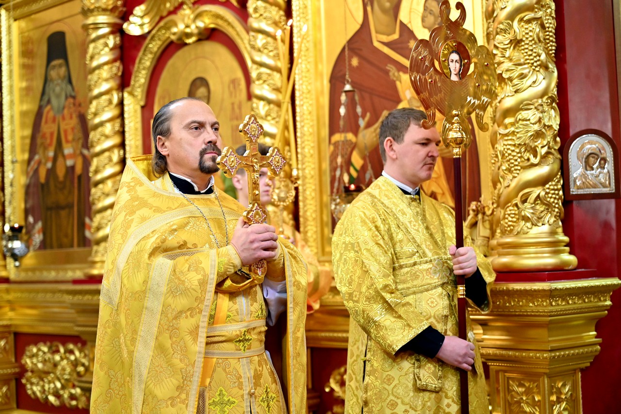 Высокопреосвященнейшим владыкам сослужили клирики собора: секретарь Иркутской епархии и ключарь храма священник Стефан Бажков, священник Евгений Копытов, священник Вячеслав Куприянов, протодиакон Димитрий Бухаров и диаконы Петр Новоселов и Владимир Соколов.
