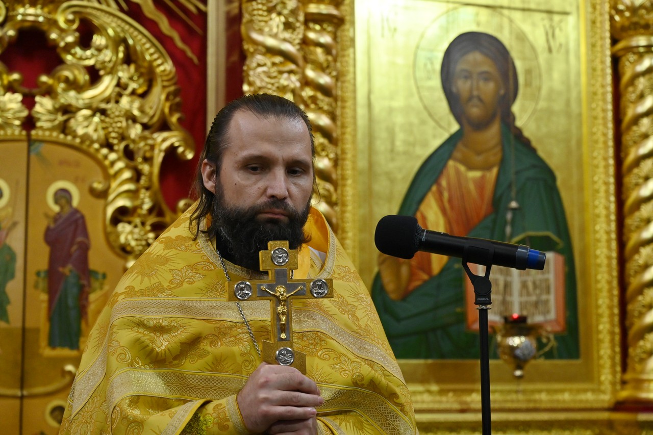 В проповеди перед Причастием священник Вячеслав Куприянов призвал молящихся изучать Священное Писание и толкование святых отцов, прилагать его к своей жизни и задавать себе правильные вопросы, которые будут помогать душе возрастать в Боге.