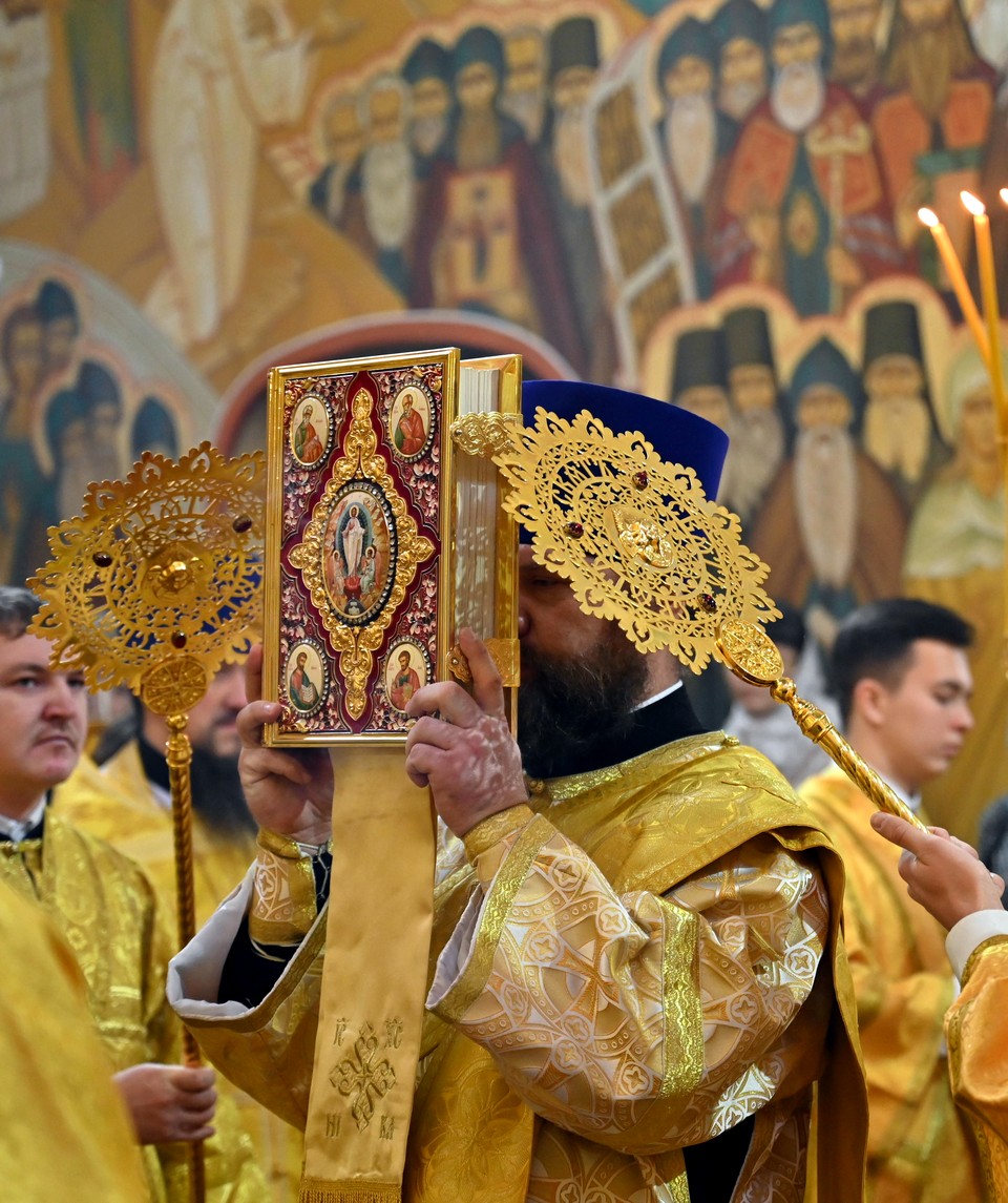 Песнопения Божественной литургии прозвучали в исполнении архиерейского хора кафедрального собора под управлением Трофима Поподько.