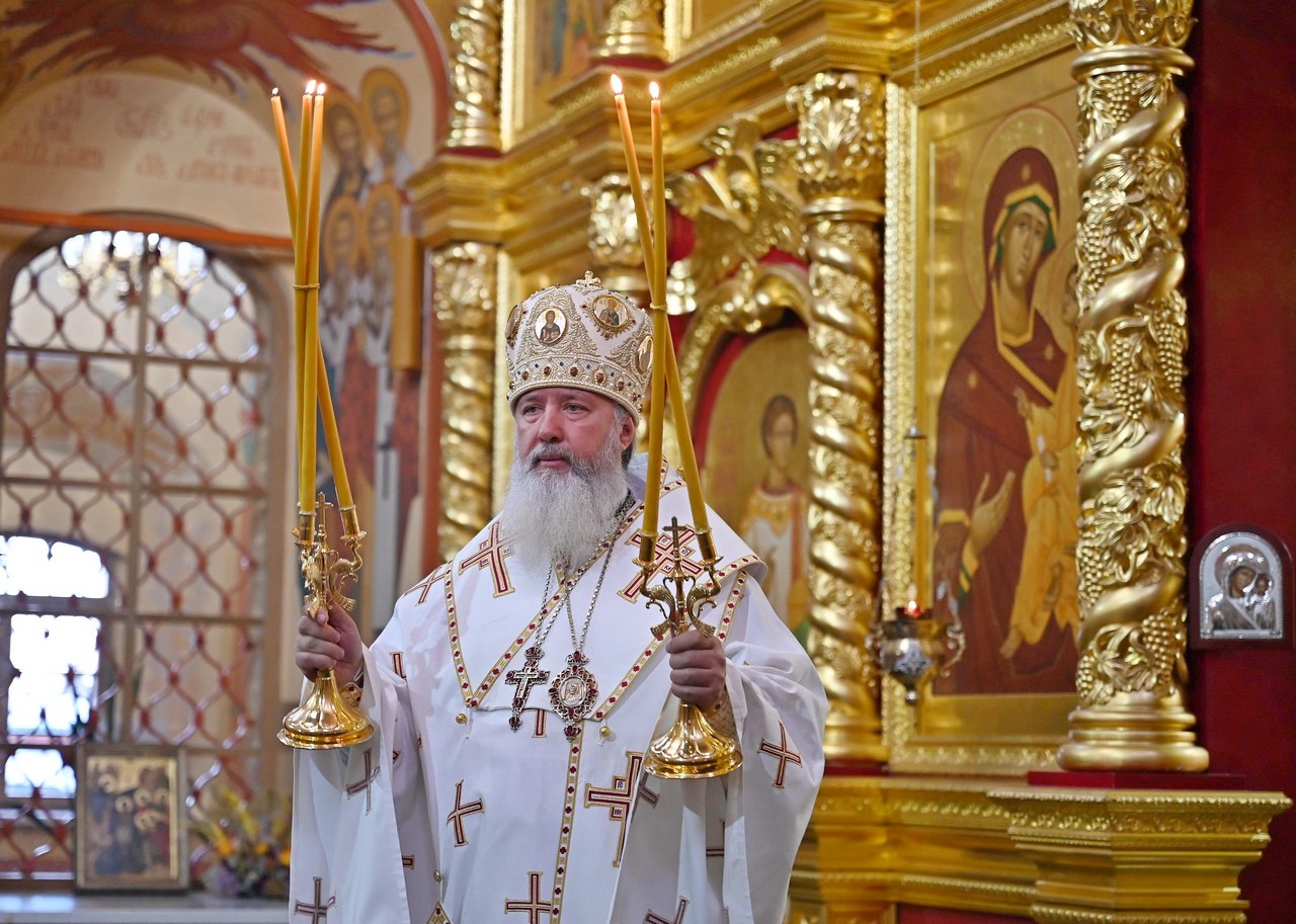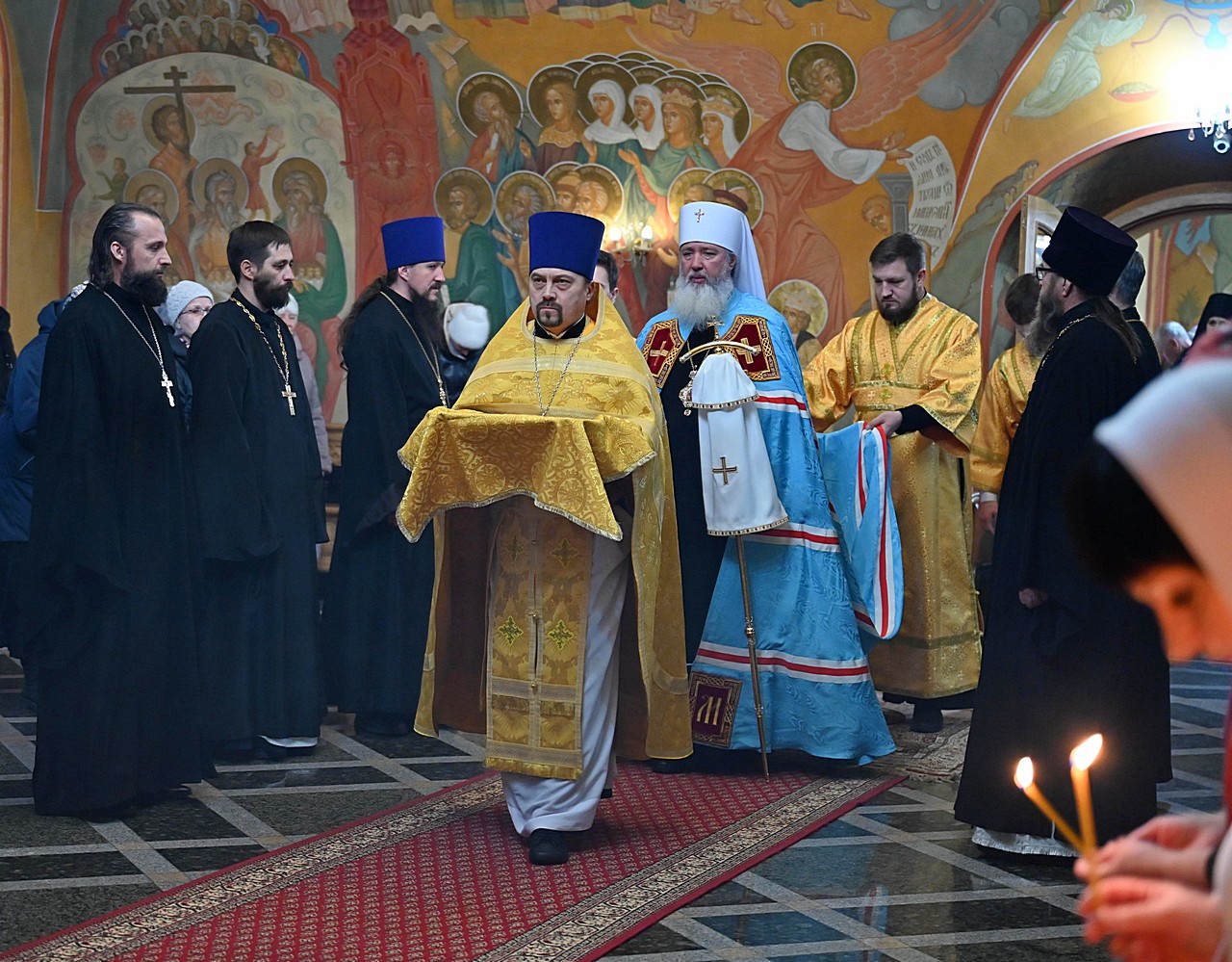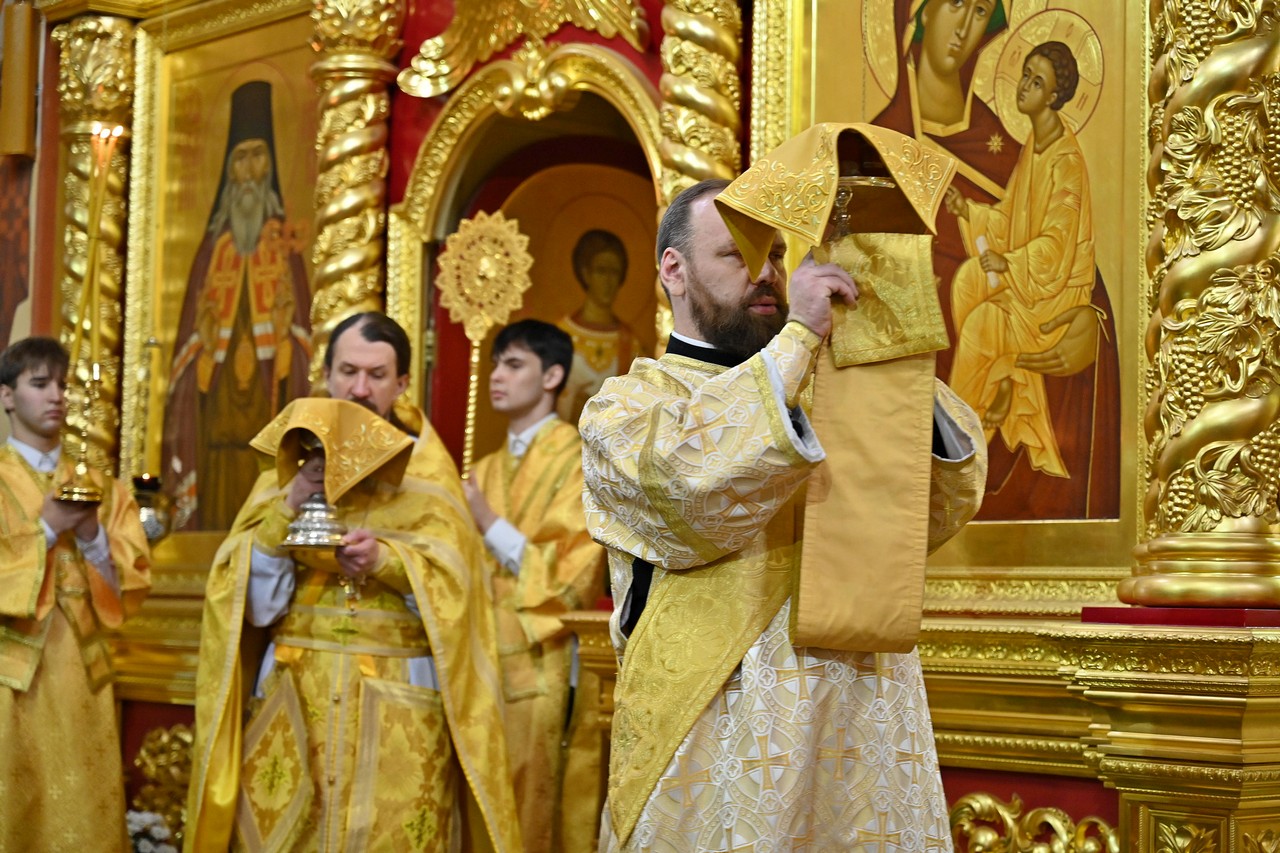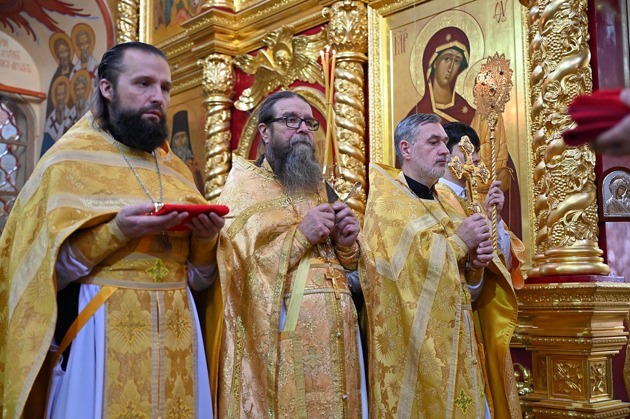 Воскресная Божественная литургия архиерейским служением состоялась 23 ноября 2025 года, в Неделю 24-ю по Пятидесятнице в Богоявленском кафедральном соборе.