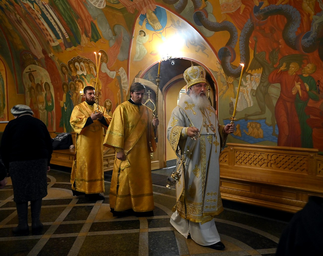 Полиелейное вечернее богослужение в канун Недели 25-й по Пятидесятнице, 29 ноября 2025 года, совершилось архиерейским служением в Богоявленском кафедральном соборе г.Иркутска.