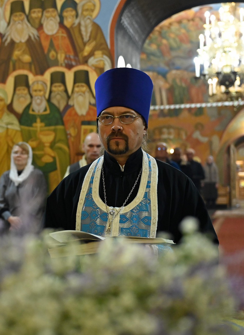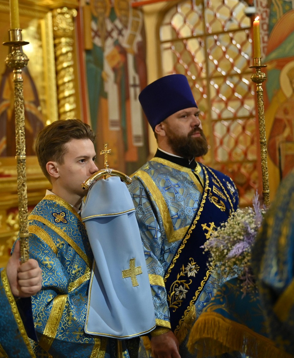 Богослужебные песнопения прозвучали в исполнении архиерейского хора Богоявленского собора под управлением регента Трофима Поподько.