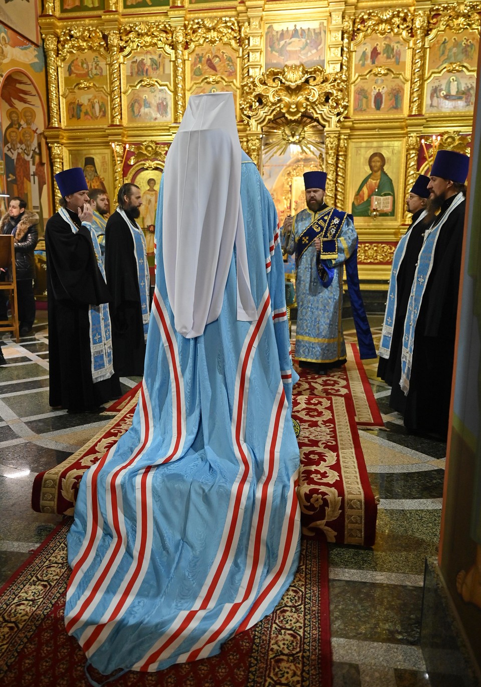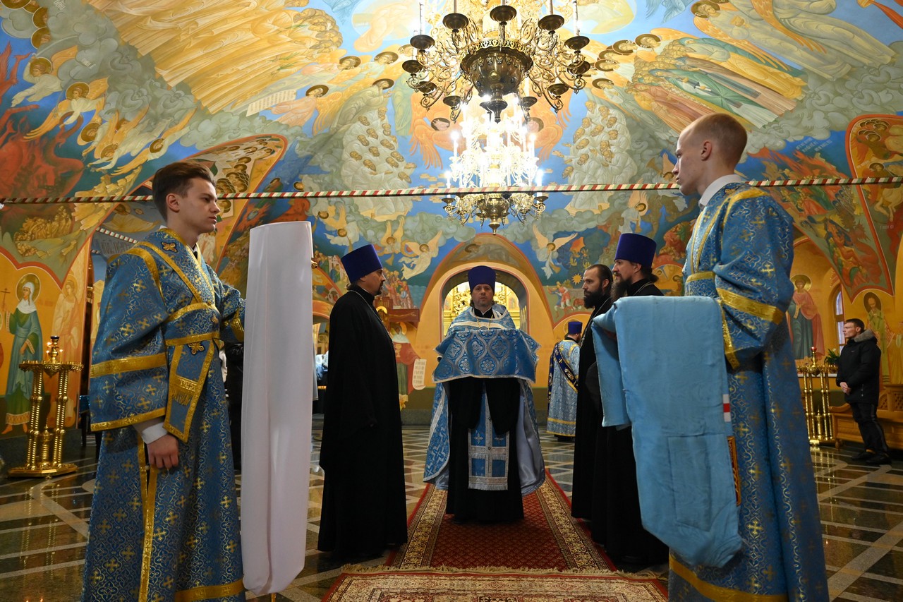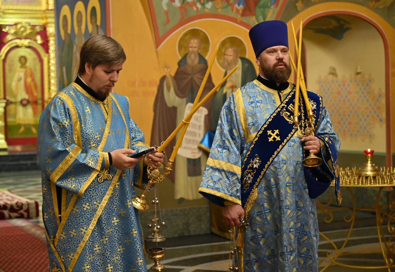 Всенощное бдение в канун праздника Введения во храм Пресвятой Богородицы архиерейским служением состоялось 3 декабря 2025 года в кафедральном Богоявленском соборе.
