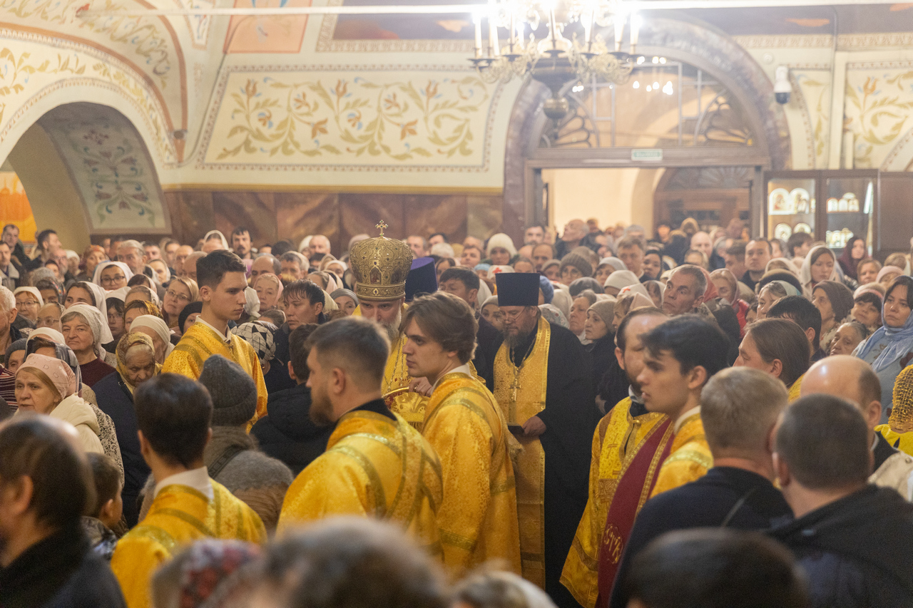 Вечером 8 декабря 2025 года, в канун дня памяти преставления святителя Иннокентия (Кульчицкого), Первого епископа Иркутского, в Знаменском соборе г.Иркутска было отслужено праздничное соборное Всенощное бдение с пением Акафиста святителю Иннокентию.