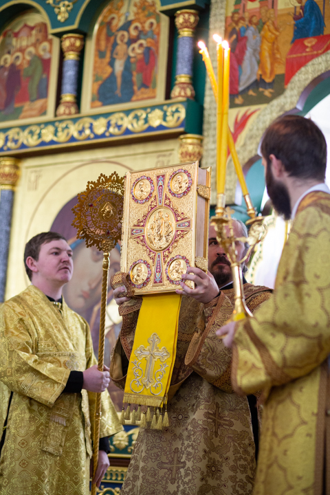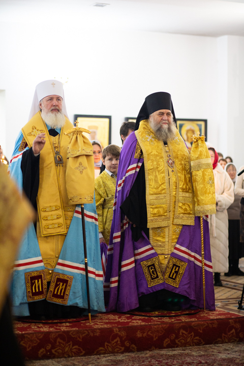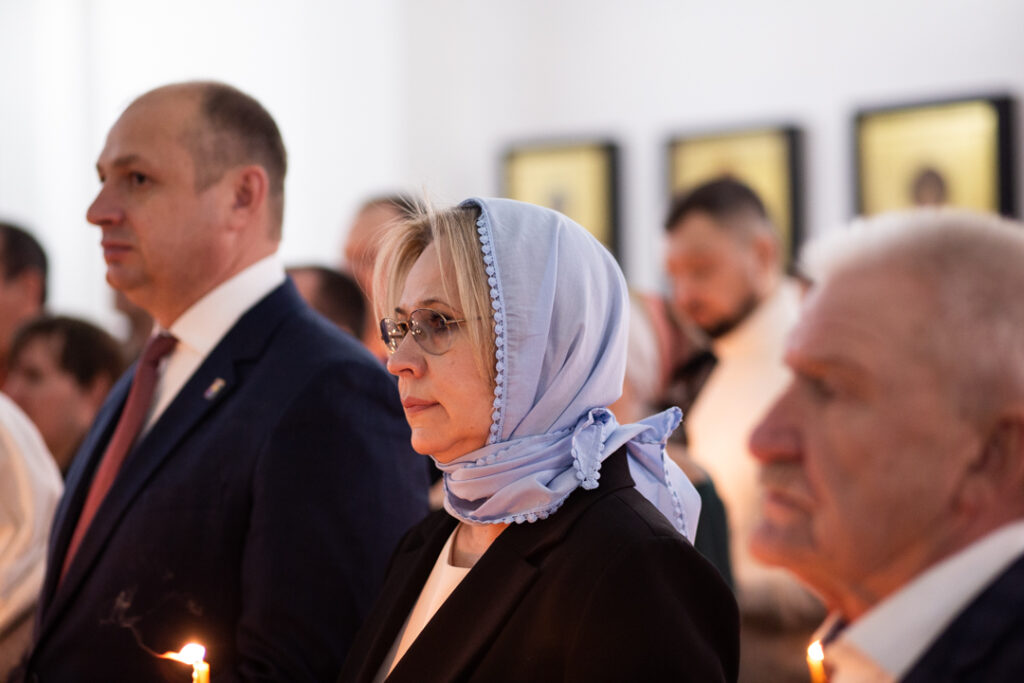 После Богослужения Игорь Иванович, Александр Сергеевич, Ольга Владимировна, владыка Максимилиан и владыка Константин прошли по храму и осмотрели помещения духовно-просветительского центра «Слово».