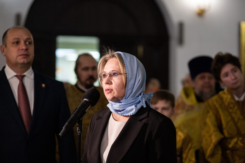 Затем присутствующих поздравила председатель Думы Янькова Ольга Владимировна. Она подчеркнула, что общая молитва за город, за его развитие и единство, особенно важна в наше время. Ольга Владимировна поздравила всех с юбилеем Братска и выразила уверенность, что несмотря на предстоящие трудности, совместными усилиями горожане смогут их преодолеть. Она пожелала, чтобы праздничный день прошел радостно и плодотворно, укрепив дружбу между жителями и направив их к светлому будущему города.