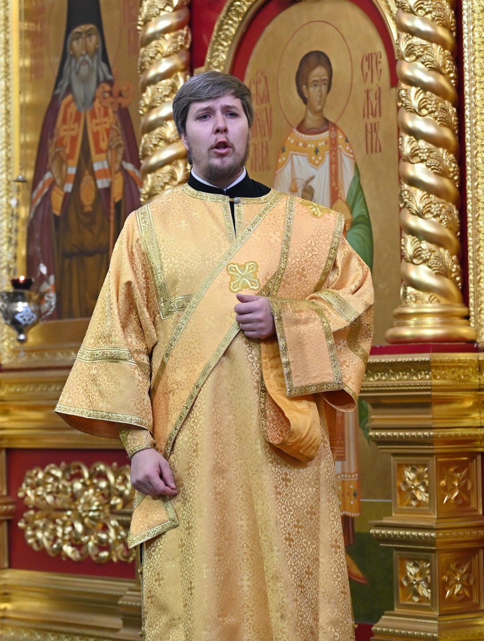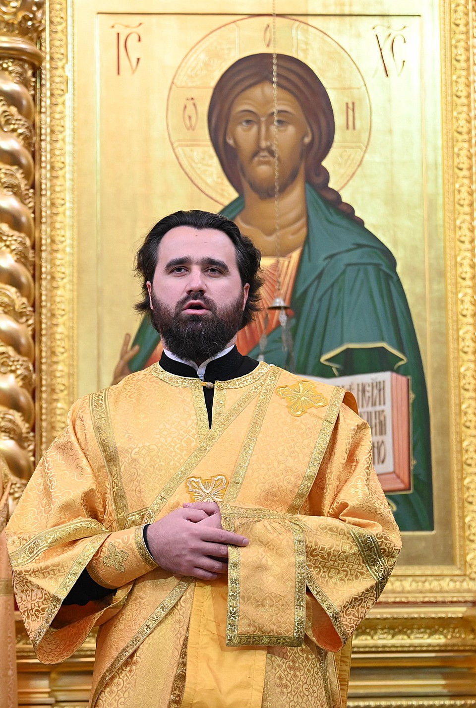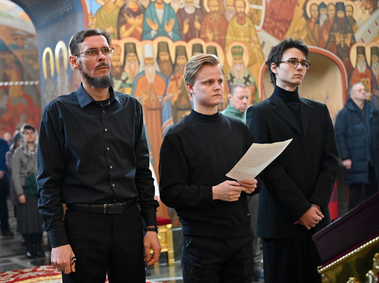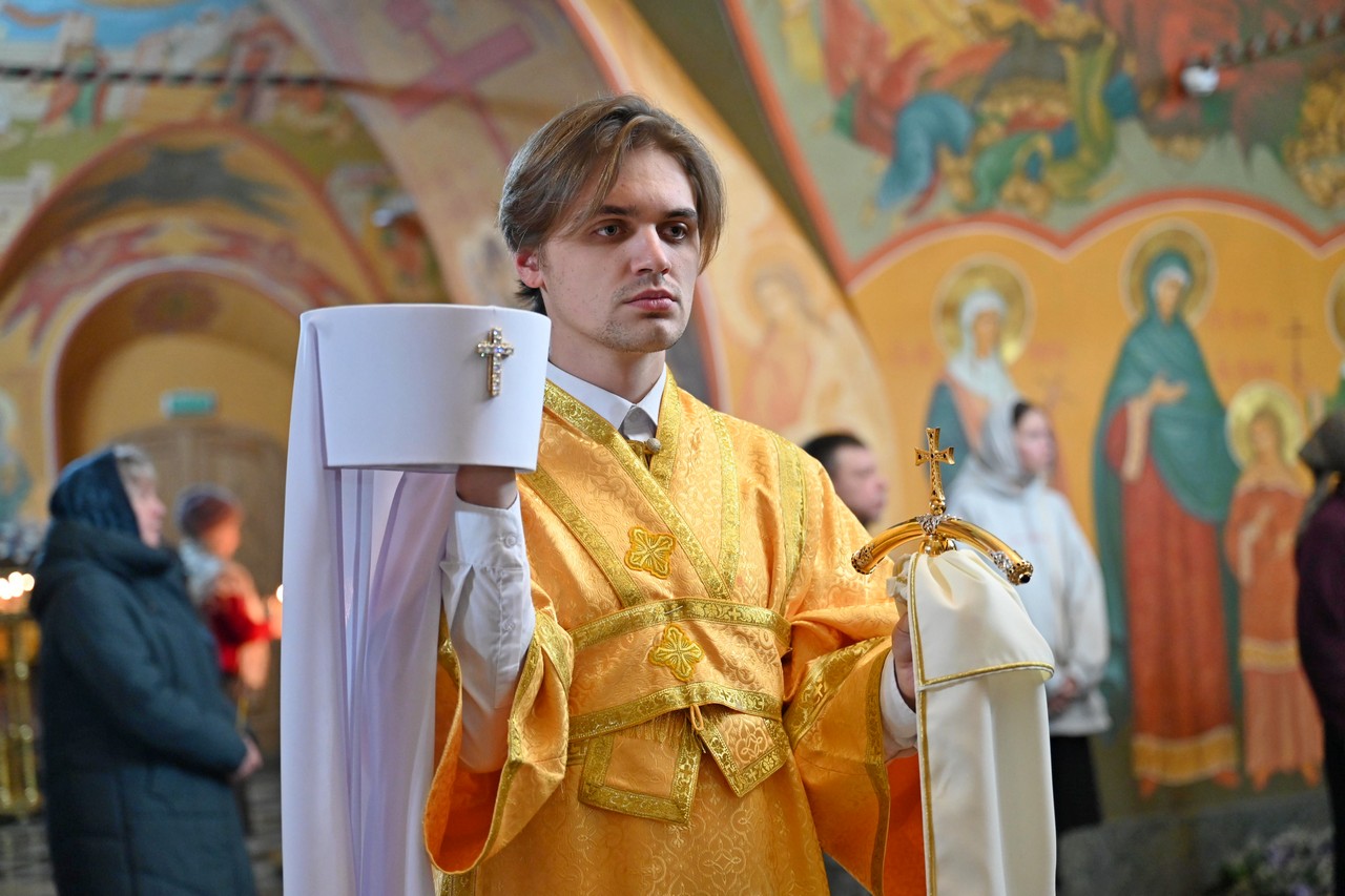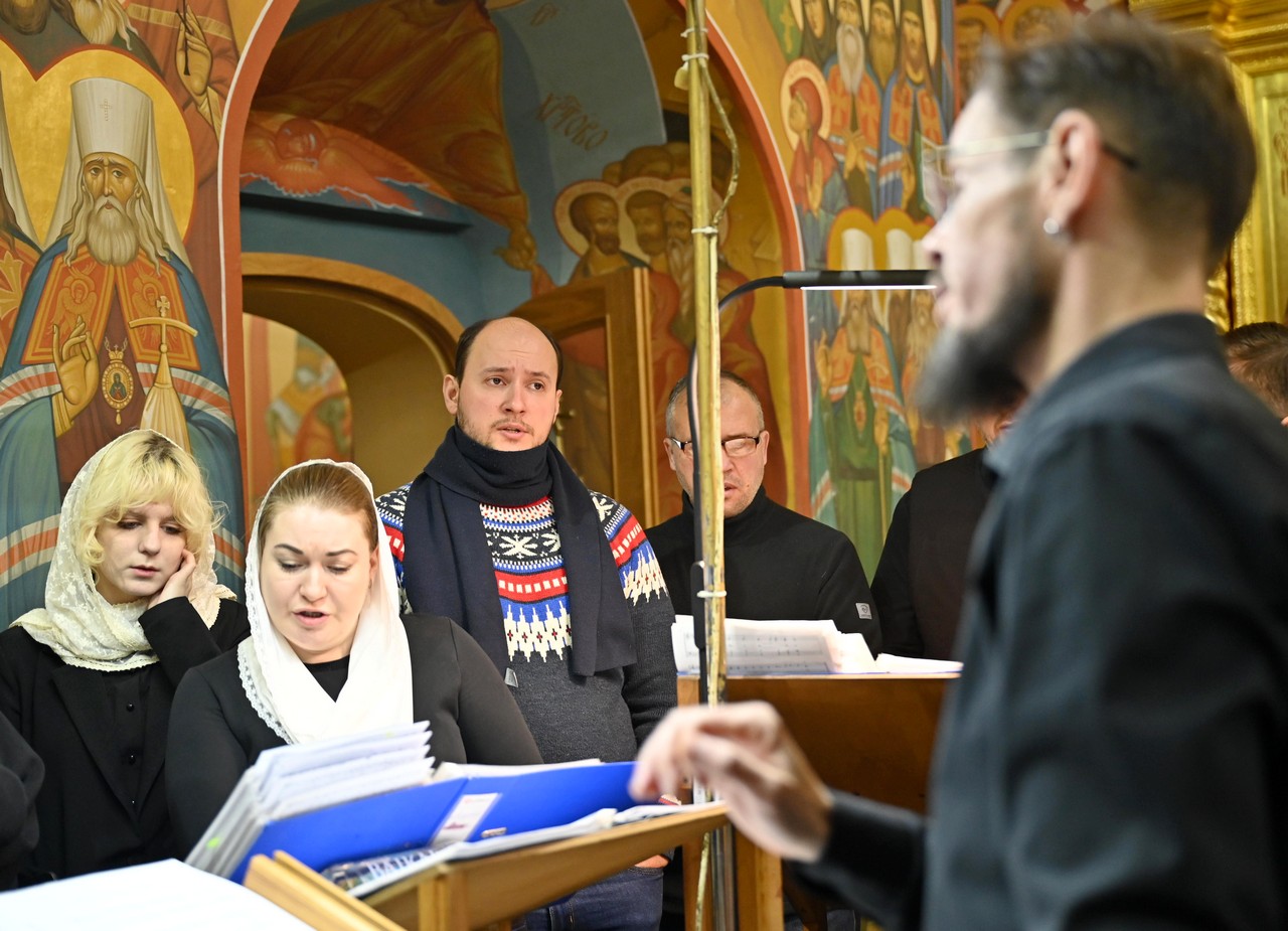 Богослужебные песнопения прозвучали в исполнении архиерейского хора Богоявленского кафедрального собора под управлением регента Трофима Поподько.