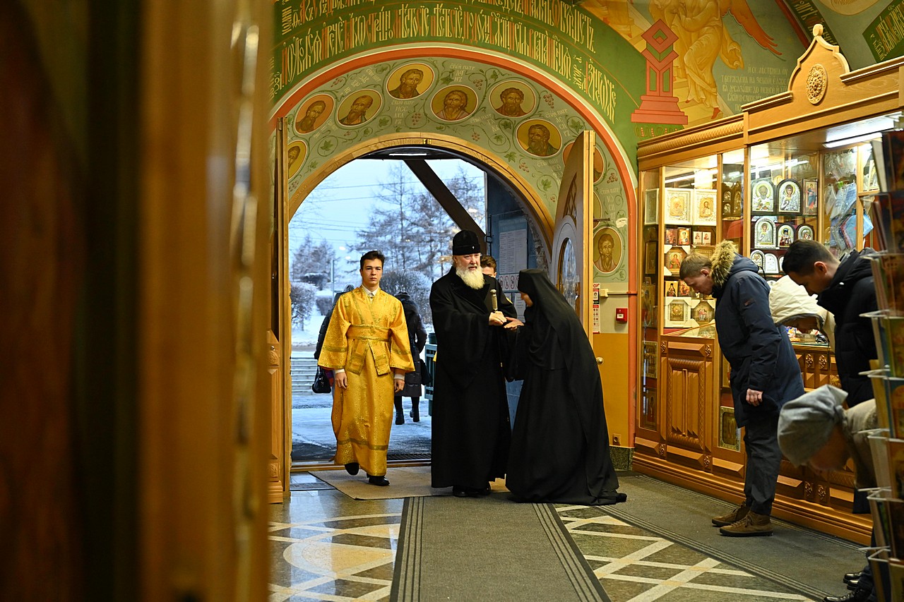 13-14 декабря 2025 года митрополит Иркутский и Ангарский Максимилиан совершил всенощное бдение и Воскресную Божественную литургию в Богоявленском кафедральном соборе в сослужении клириков храма.