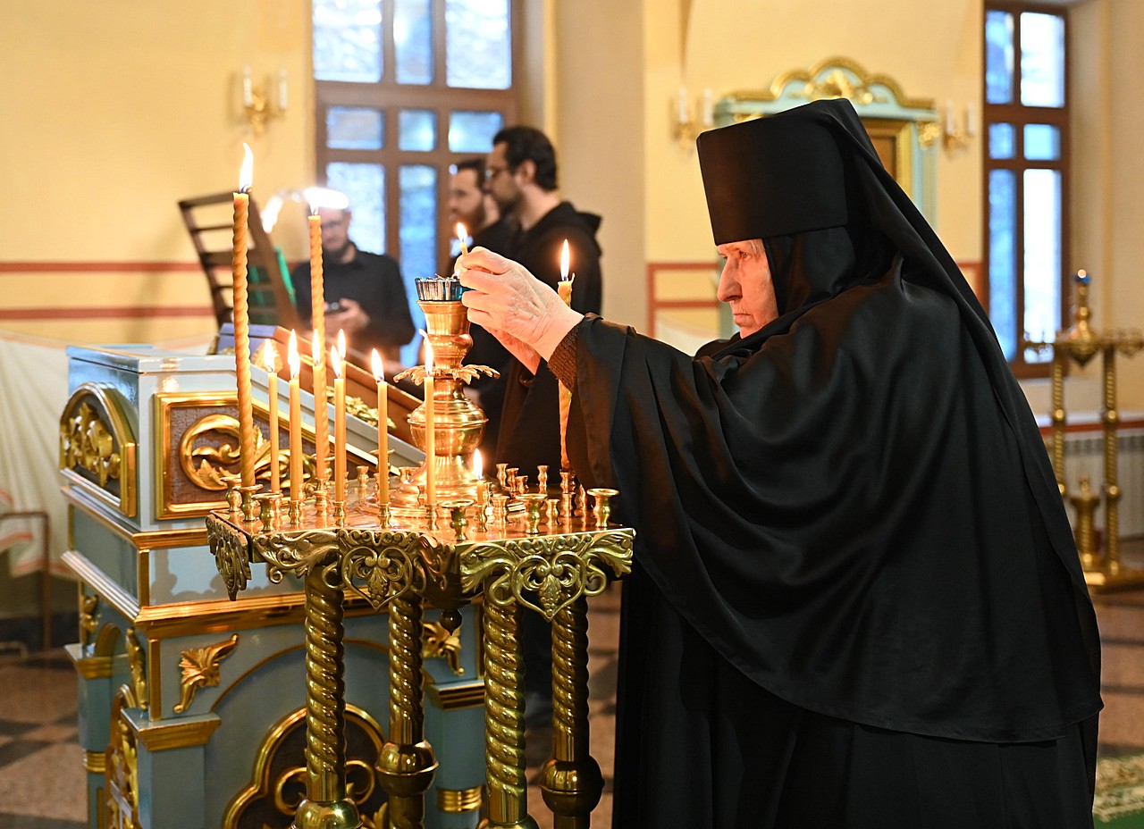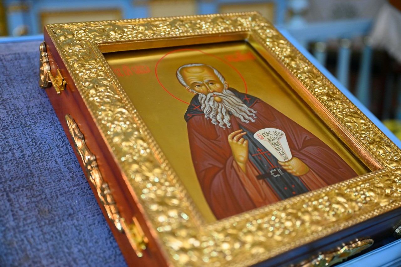 В проповеди перед Причастием игумен Феофан (Евтихеев) напомнил о фактах поразительного стояния пред Богом с малых лет и до конца жизни в преклонном возрасте преподобного Саввы, о плодах его трудов по развитию монашества, покровителем которого он по достоинству является.