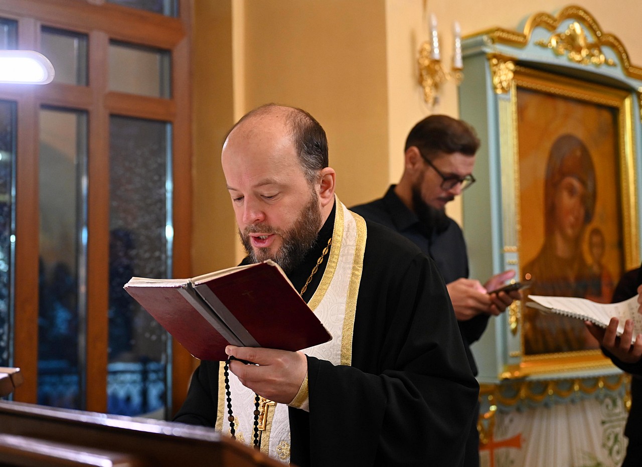 Молитвенные песнопения благоговейно исполнил епархиальный мужской квартет «Знамение» под руководством Трофима Поподько.