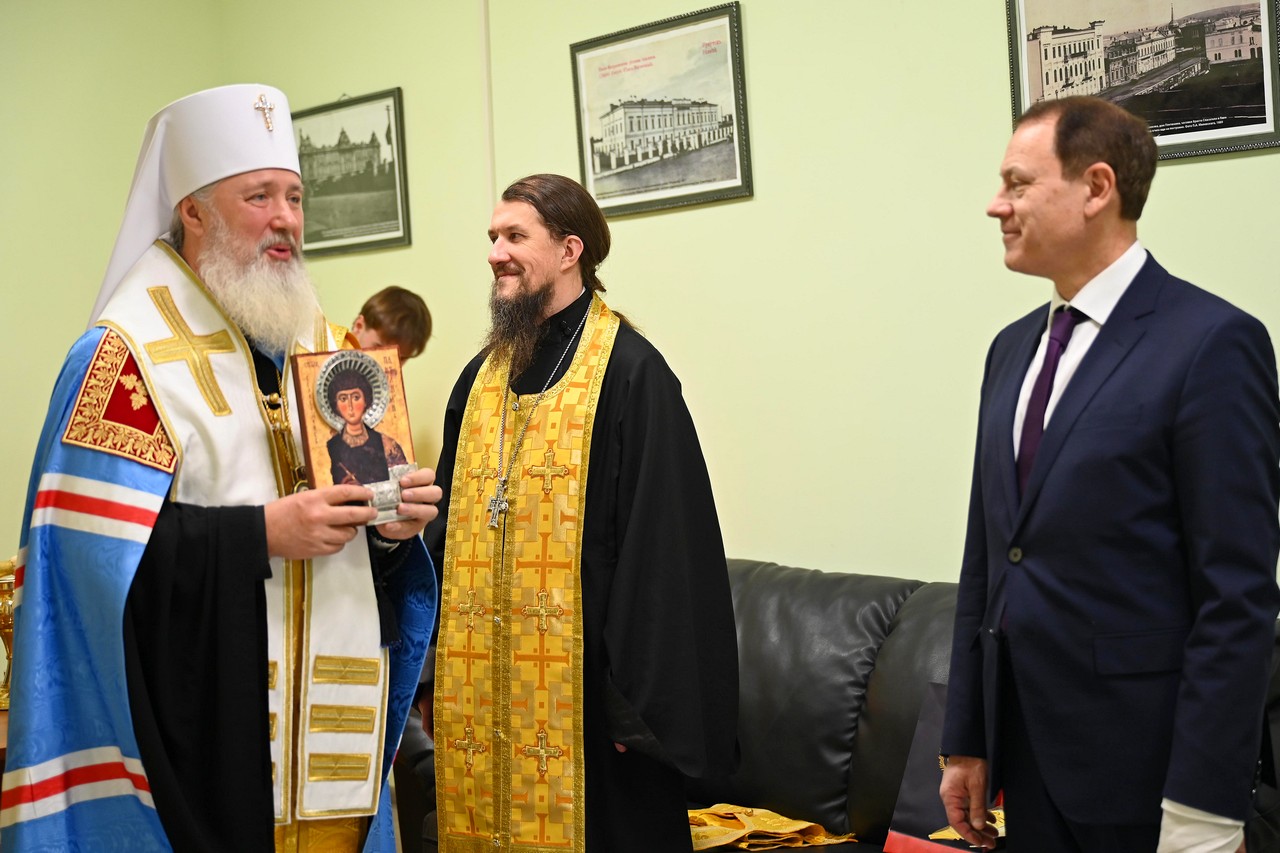 Владыка Максимилиан вручил Андрею Арсеньевичу икону великомученика Пантелеимона - почитаемого святого врача и покровителя врачей - и пожелал сотрудникам