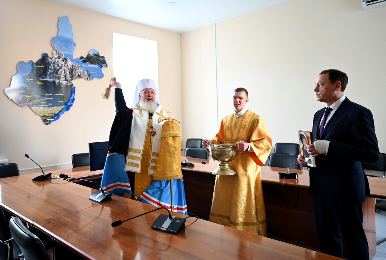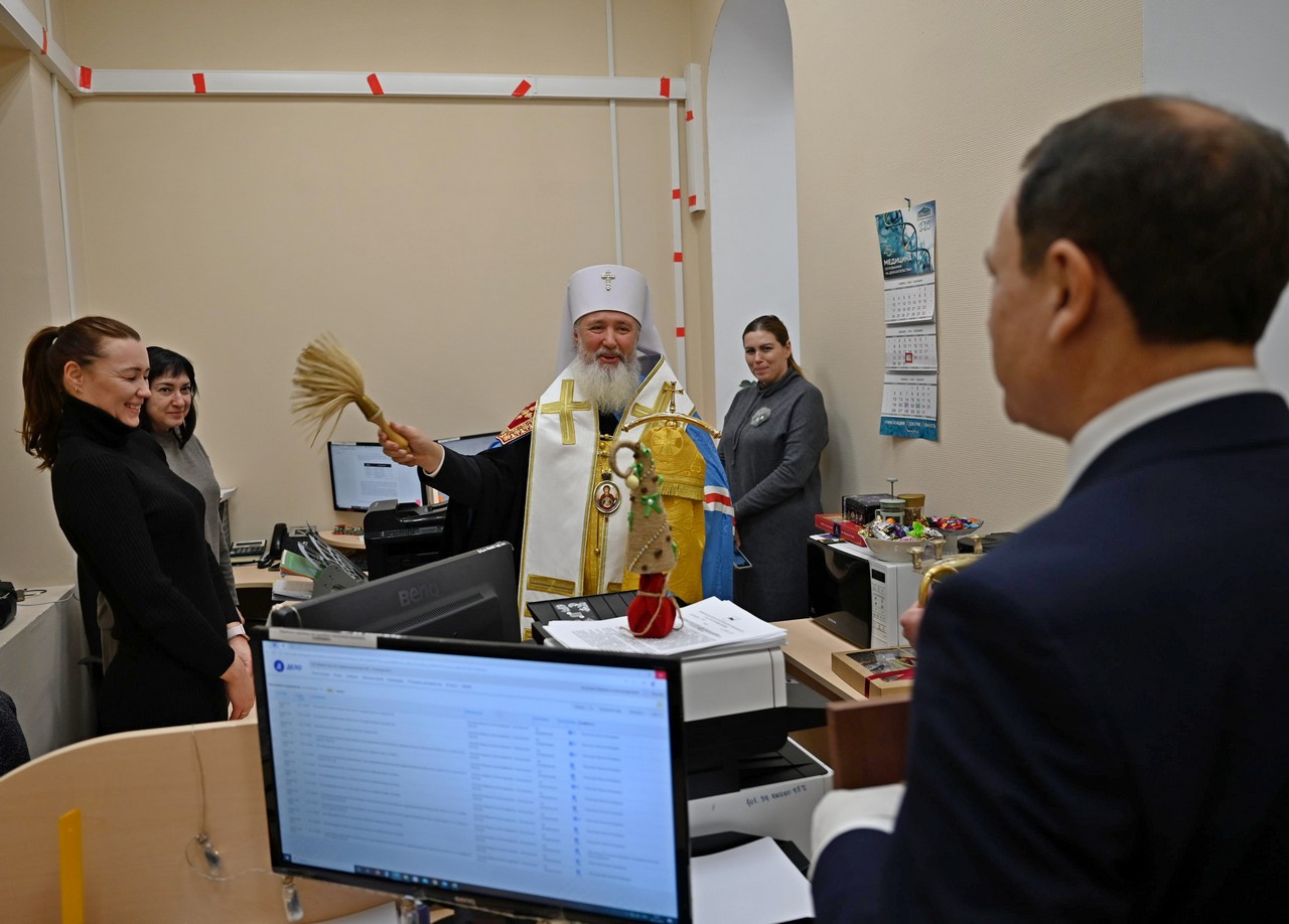 В завершение богослужения митрополит Максимилиан и священник Стефан окропили святой водой кабинеты обоих корпусов Министерства.