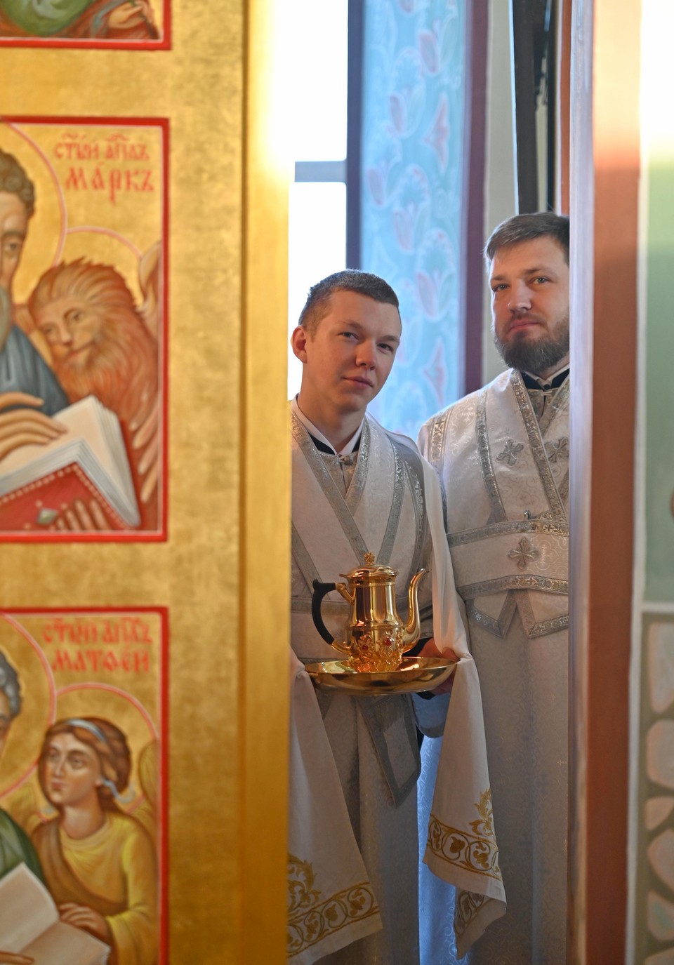 Правящему архиерею сослужили секретарь Иркутской епархии священник Стефан Бажков благочинный II-го Иркутского районного церковного округа протоиерей Вячеслав Пушкарев и клирики благочиния.