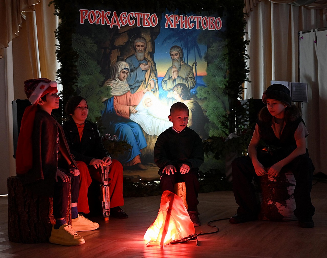 По окончании литургии воспитанники Церковно-приходской школы во имя свт.Софрония Иркутского, которая действует при храме, показали гостям Рождественский праздничный концерт.