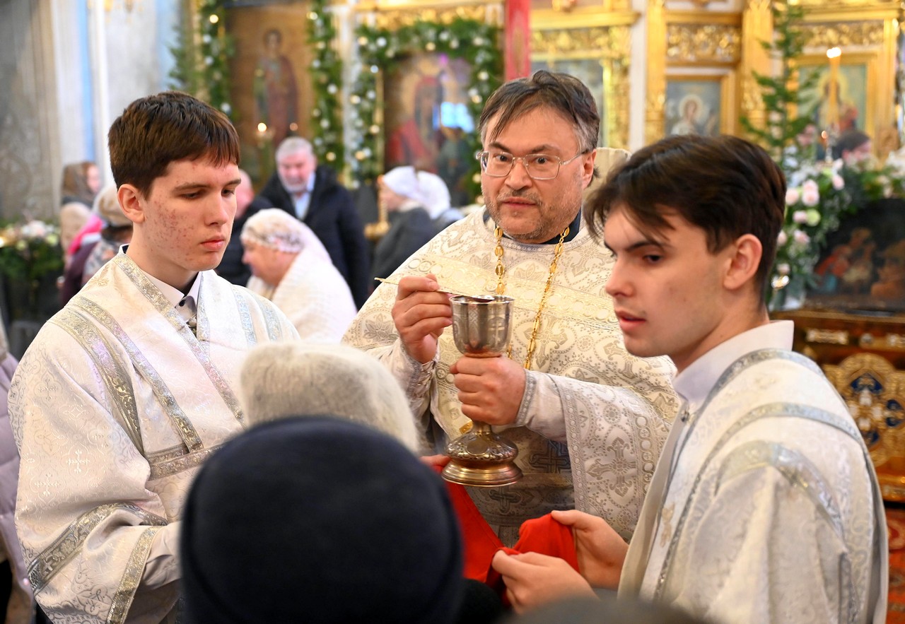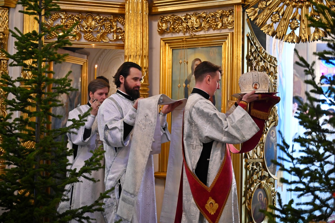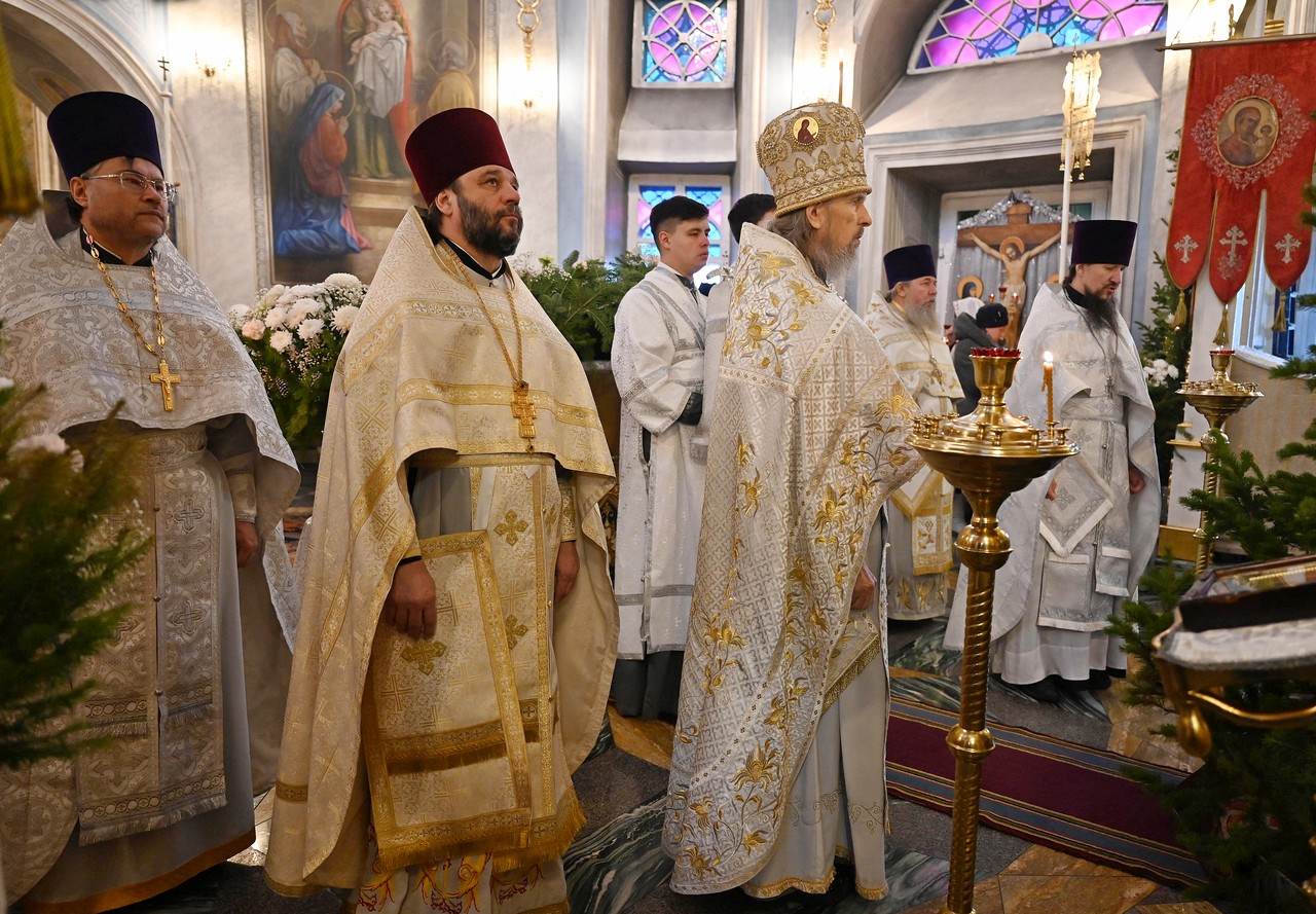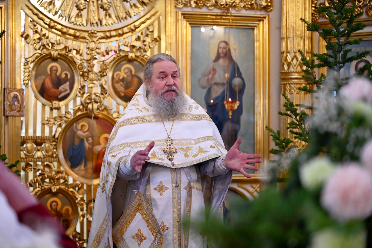 Настоятель храма протоиерей Сергий сердечно поблагодарил правящего архиерея за радость Литургии архиерейским служением и поздравил его с мироспасительным праздником Христова Рождества.