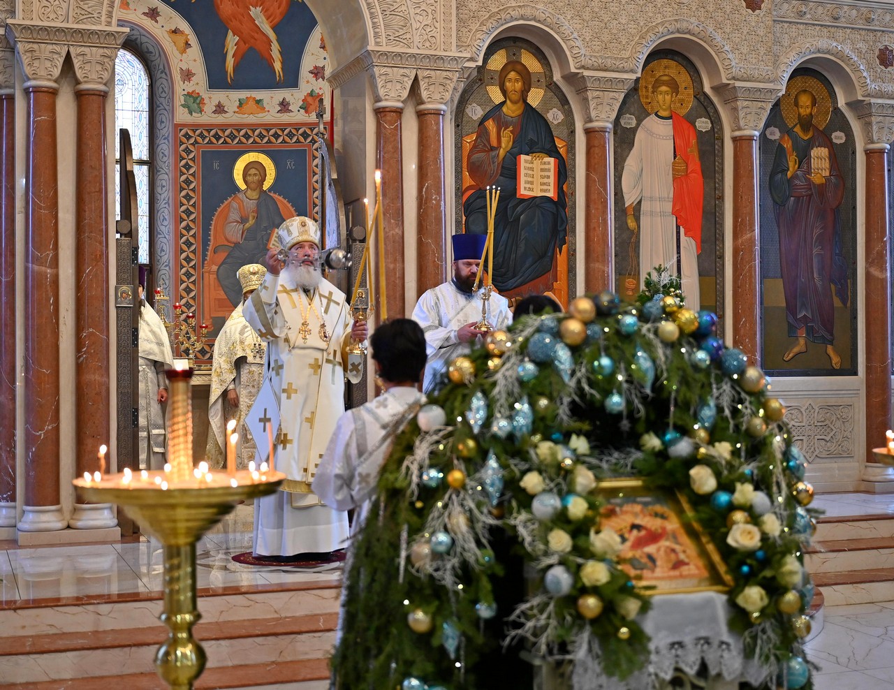 В день Отдания праздника Рождества Христова, 13 января 2026 года, архиерейское служение состоялось в храме святых апостолов Петра и Павла города Шелехова.