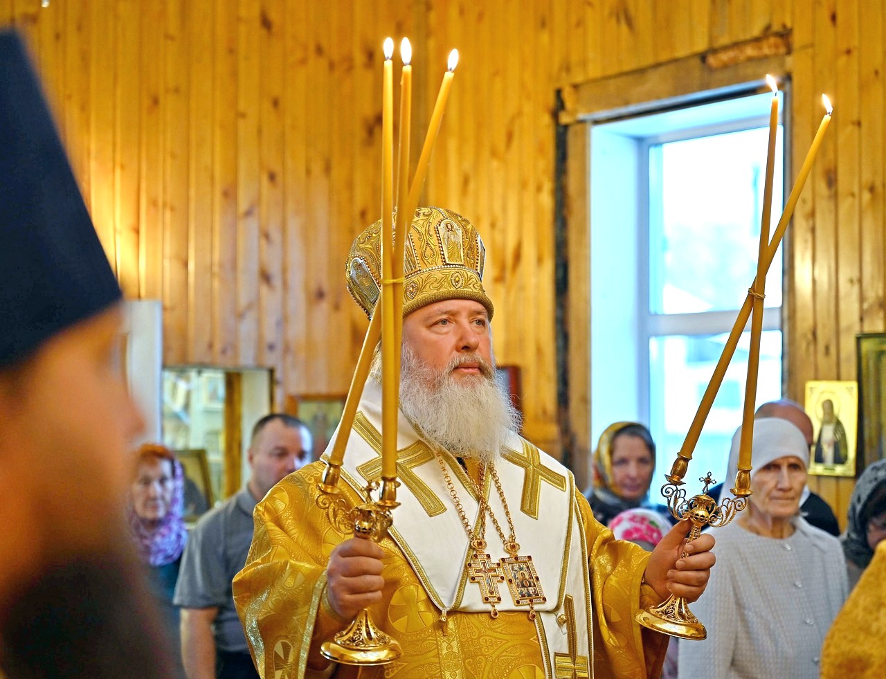 По окончании Литургии было отслужено славление святителю Василию Великому и, по традиции, в престольный праздник храма, возглашено многолетие, после чего митрополит Максимилиан обратился к прихожанам храма с приветственным словом.