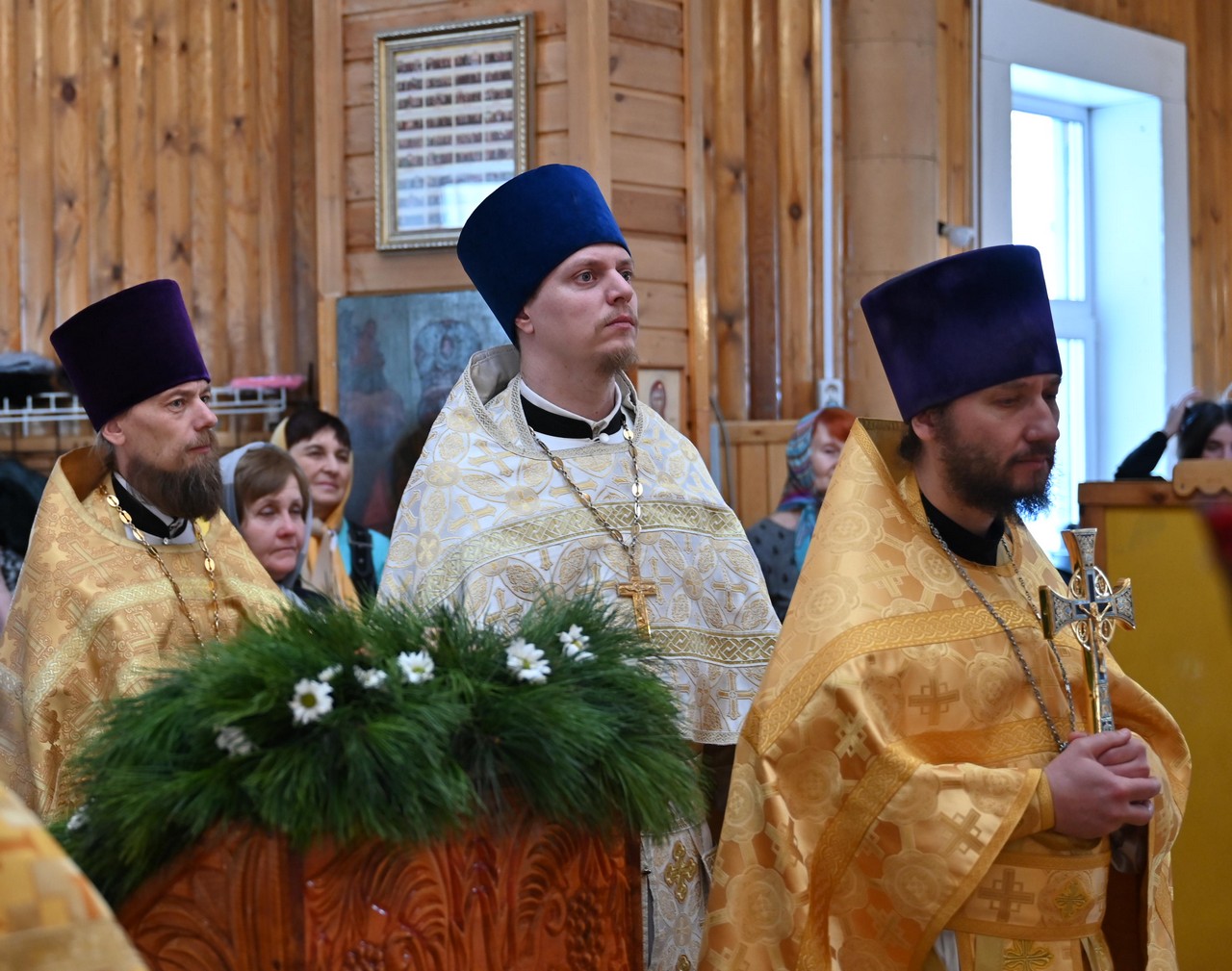 Его Высокопреосвященству сослужили: секретарь Иркутской епархии священник Стефан Бажков, благочинный Черемховского церковного округа протоиерей Николай Ершуков, настоятель Свято-Софрониевского храма г.Черемхово протоиерей Леонид Шевченко, настоятель храма священник Сергий Соколов, настоятель храма во имя свв.блгв. князей Петра и Февронии священник Михаил Шевченко, протодиакон Димитрий Бухаров, диакон Петр Новоселов и диакон Владимир Соколов.