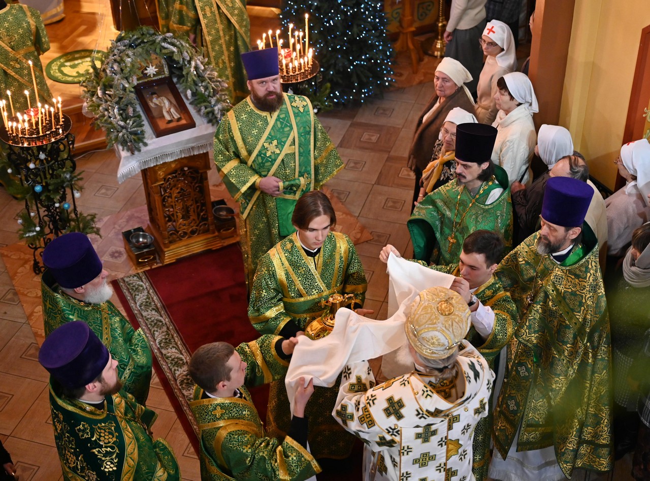15 января 2026 года, в день памяти преставления и второго обретения мощей св.прп.Серафима Саровского, архиерейское богослужение состоялось в храме во имя святой блаженной Ксении Петербургской г.Иркутска.
