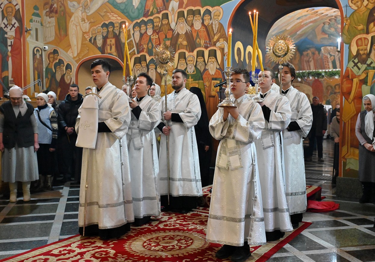 Песнопения праздничного богослужения прозвучали в исполнении архиерейского хора собора под управлением регента Трофима Поподько.