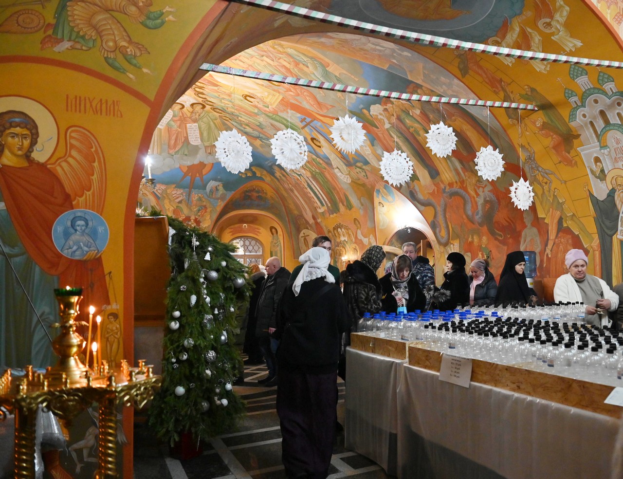 По завершении Литургии владыка Максимилиан совершил Великое освящение воды на заливе Якоби в ледовом комплексе «Иордань», подготовленном при содействии мэра города Руслана Николаевича Болотова и городских служб силами прихожан Александро-Невского храма (настоятель – протоиерей Марк Косолапов) и сотрудников Театра Народной Драмы (руководитель – Михаил Георгиевич Корнев).