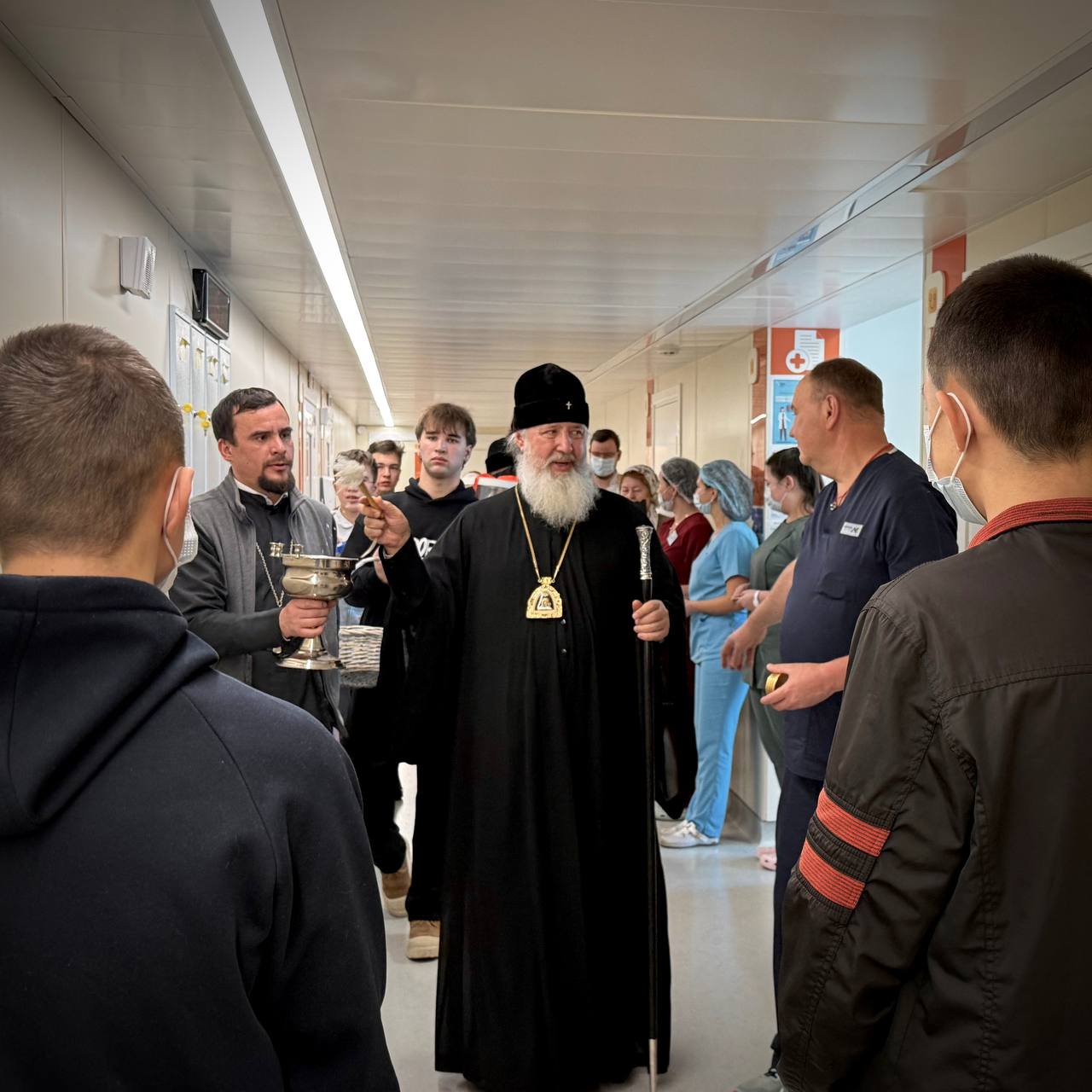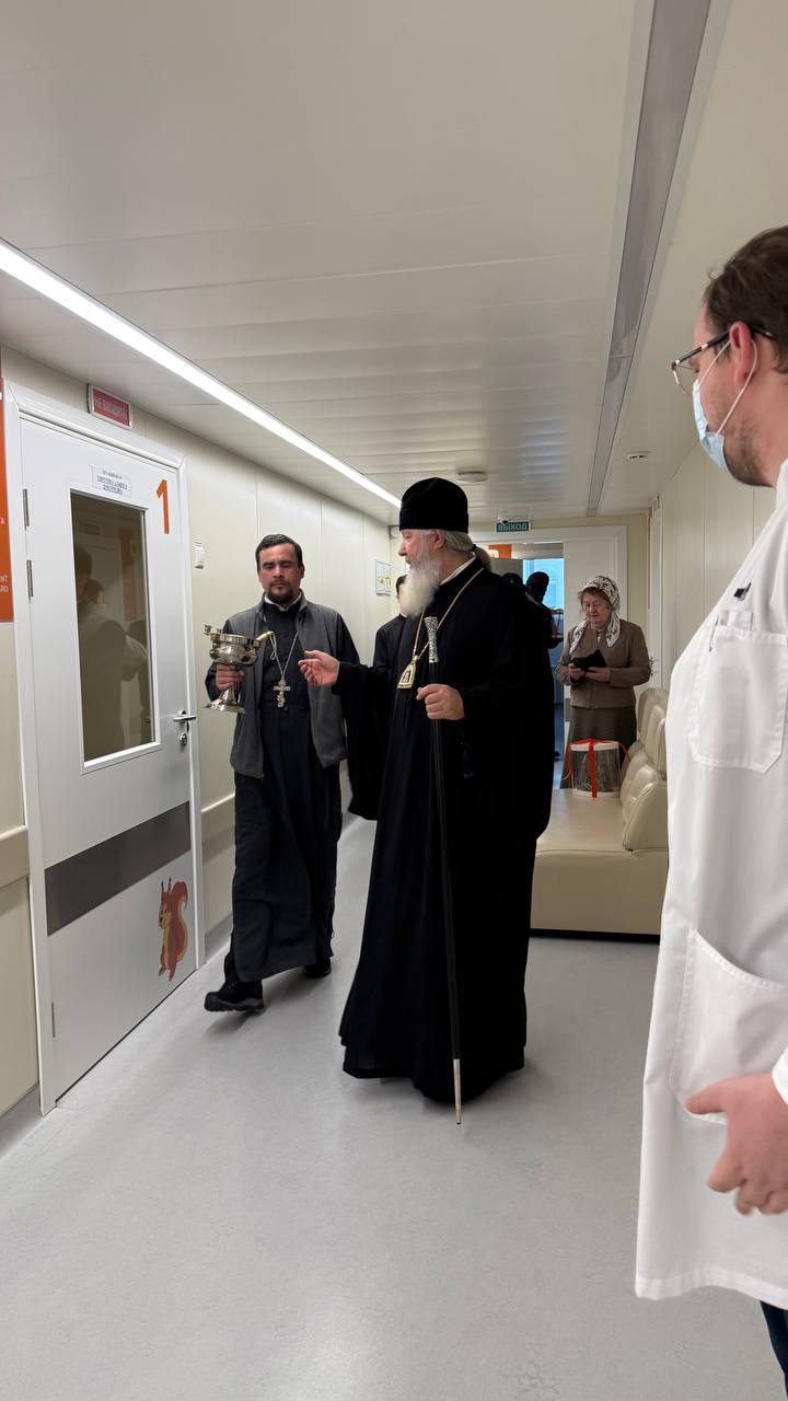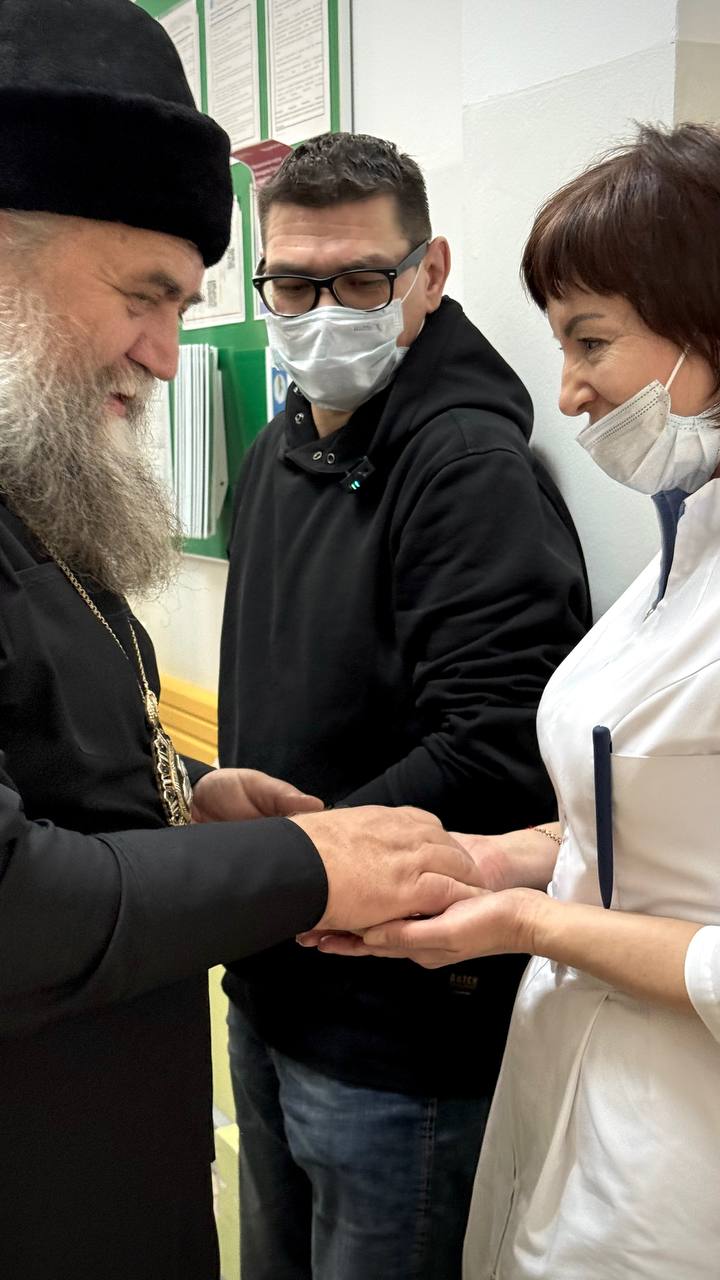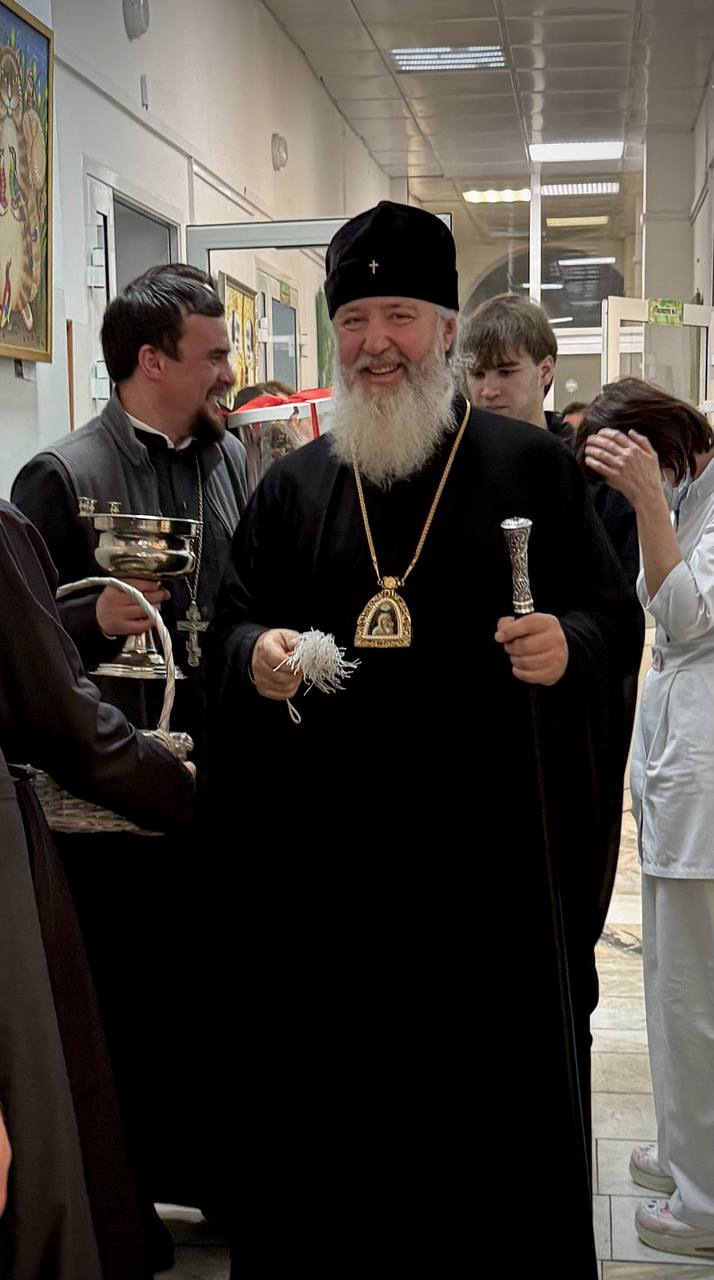 По сложившейся доброй традиции архипастырей встретил главный врач учреждения Юрий Козлов. Владыки помолились в домовом храме при больнице, после чего посетили все отделения.