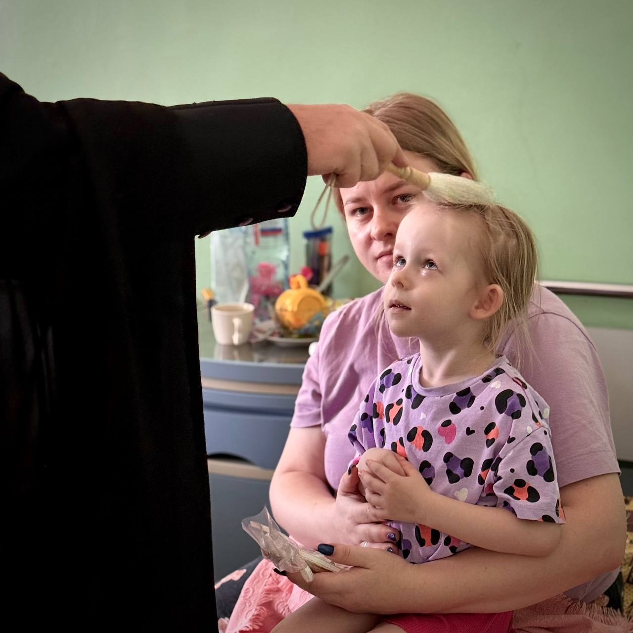 Маленькие пациенты и их родители с радостью встречали гостей: кто-то хотел пожать руку, кто-то — сфотографироваться на память, а кто-то просто улыбался и внимательно слушал слова поддержки и благословения.