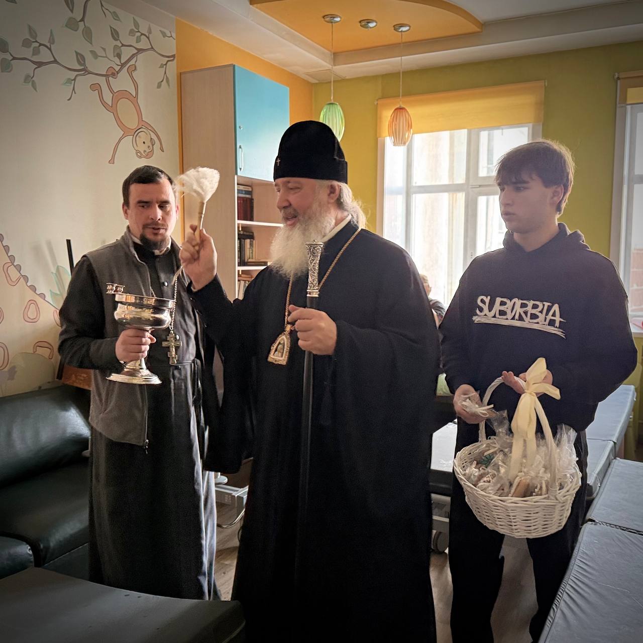Митрополит Максимилиан окропил святой водой палаты маленьких пациентов и кабинеты врачей. Детям и их родителям архипастыри раздавали специально испечённые пряники и сладости, поздравляя всех с праздником Крещения Господня.