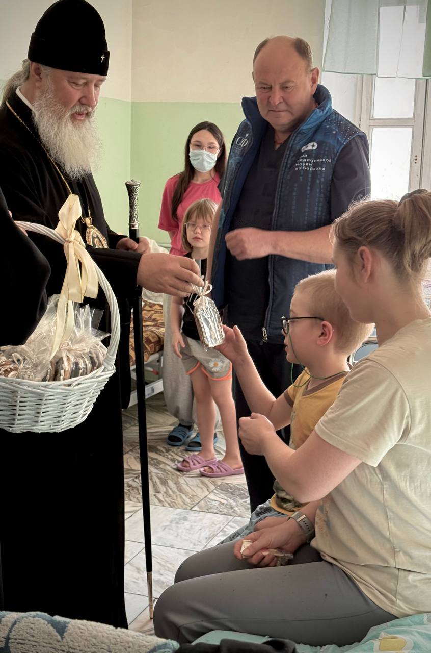Посещение больных — одно из важнейших дел христианского милосердия. Здесь слово соединяется с делом, молитва — с живым участием, а благодать Божия утешает, укрепляет и даёт надежду. Желаем здравия душевного и телесного всем детям, родителям и врачам больницы.