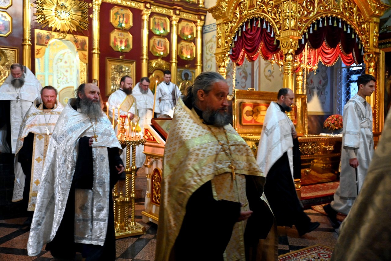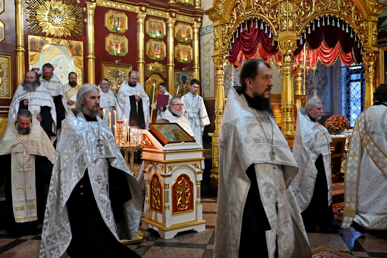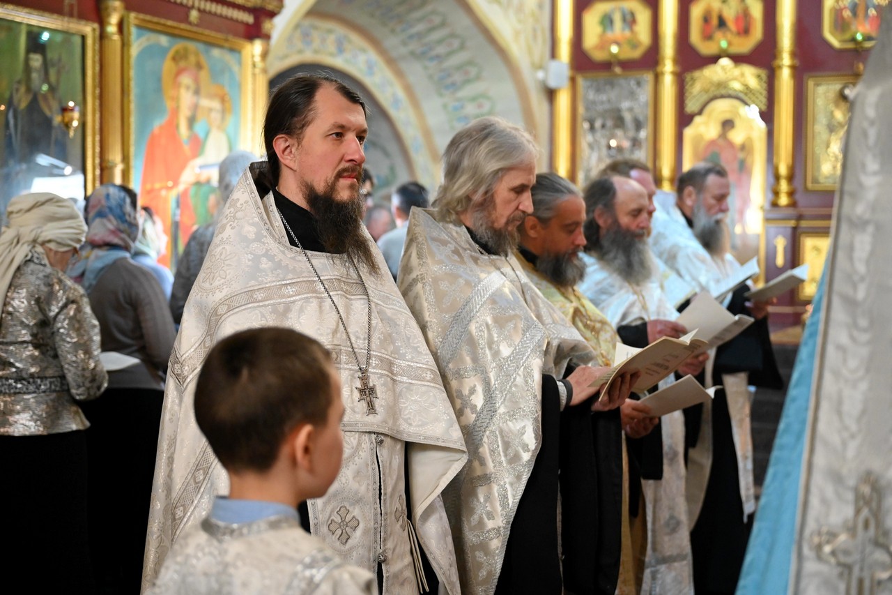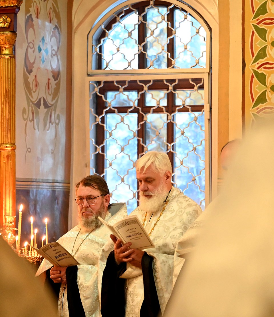Песнопения акафиста прозвучали в исполнении клиросного хора собора под управлением Екатерины Телегиной.