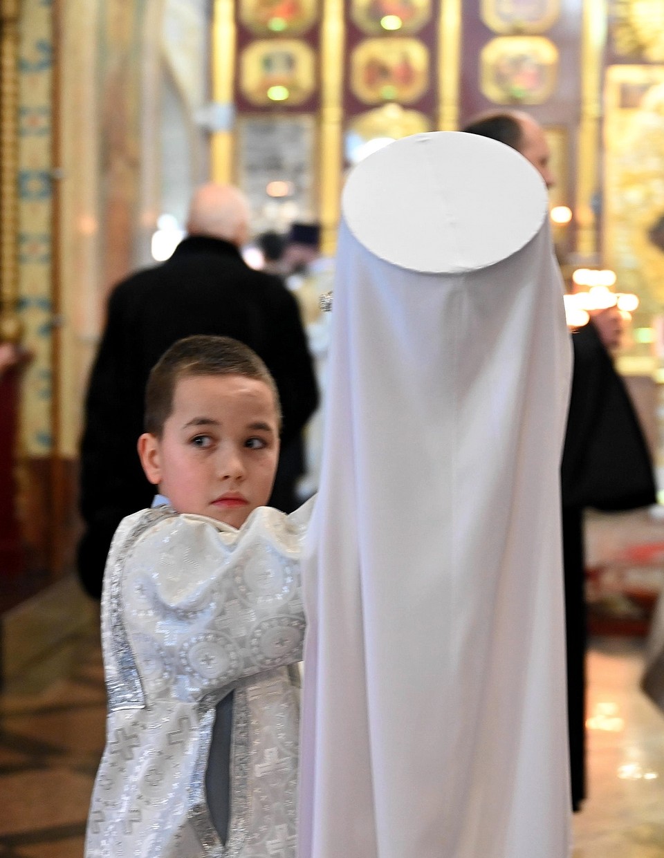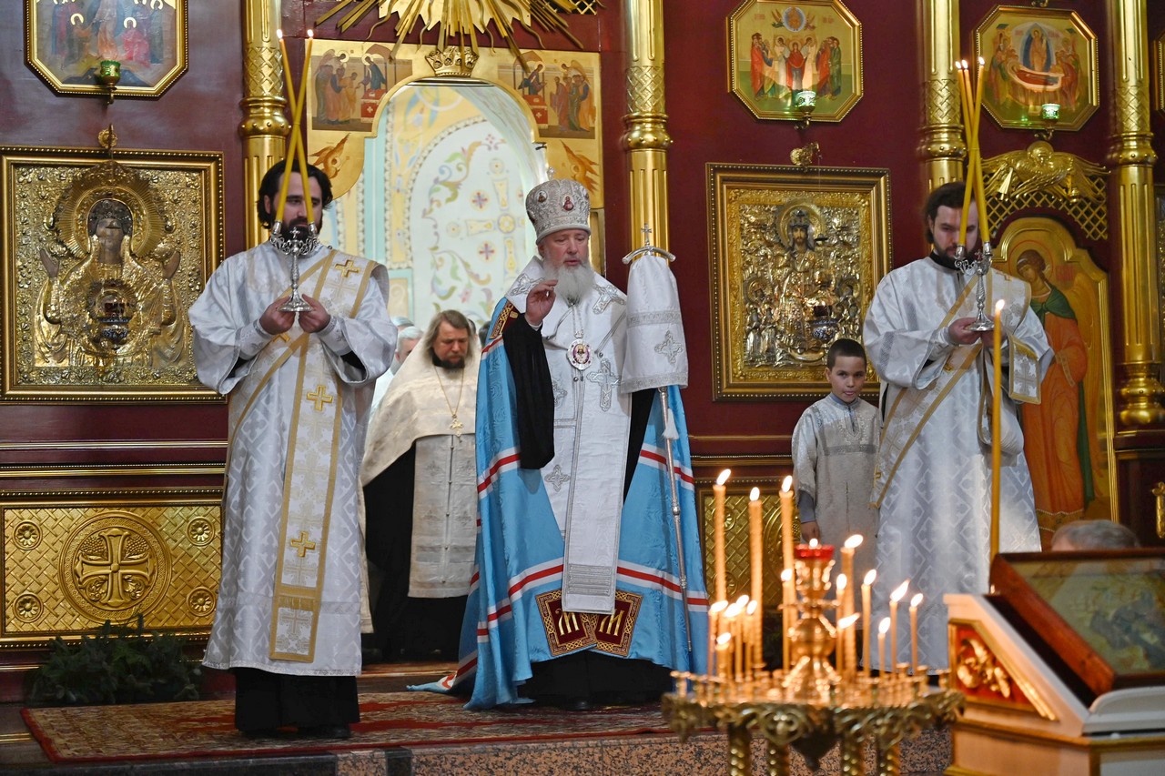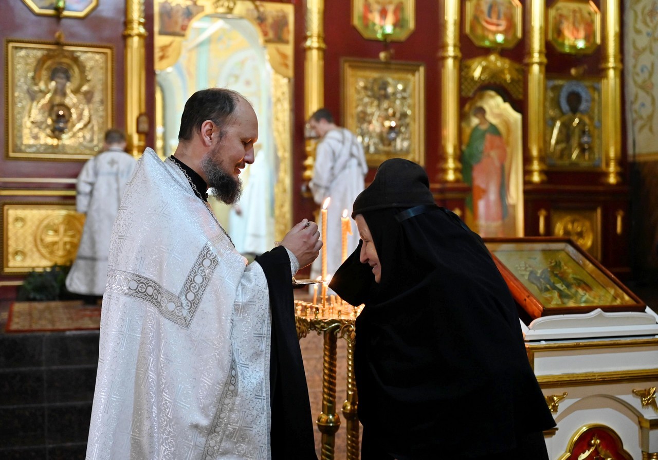 Песнопения акафиста прозвучали в исполнении клиросного хора собора под управлением Екатерины Телегиной.