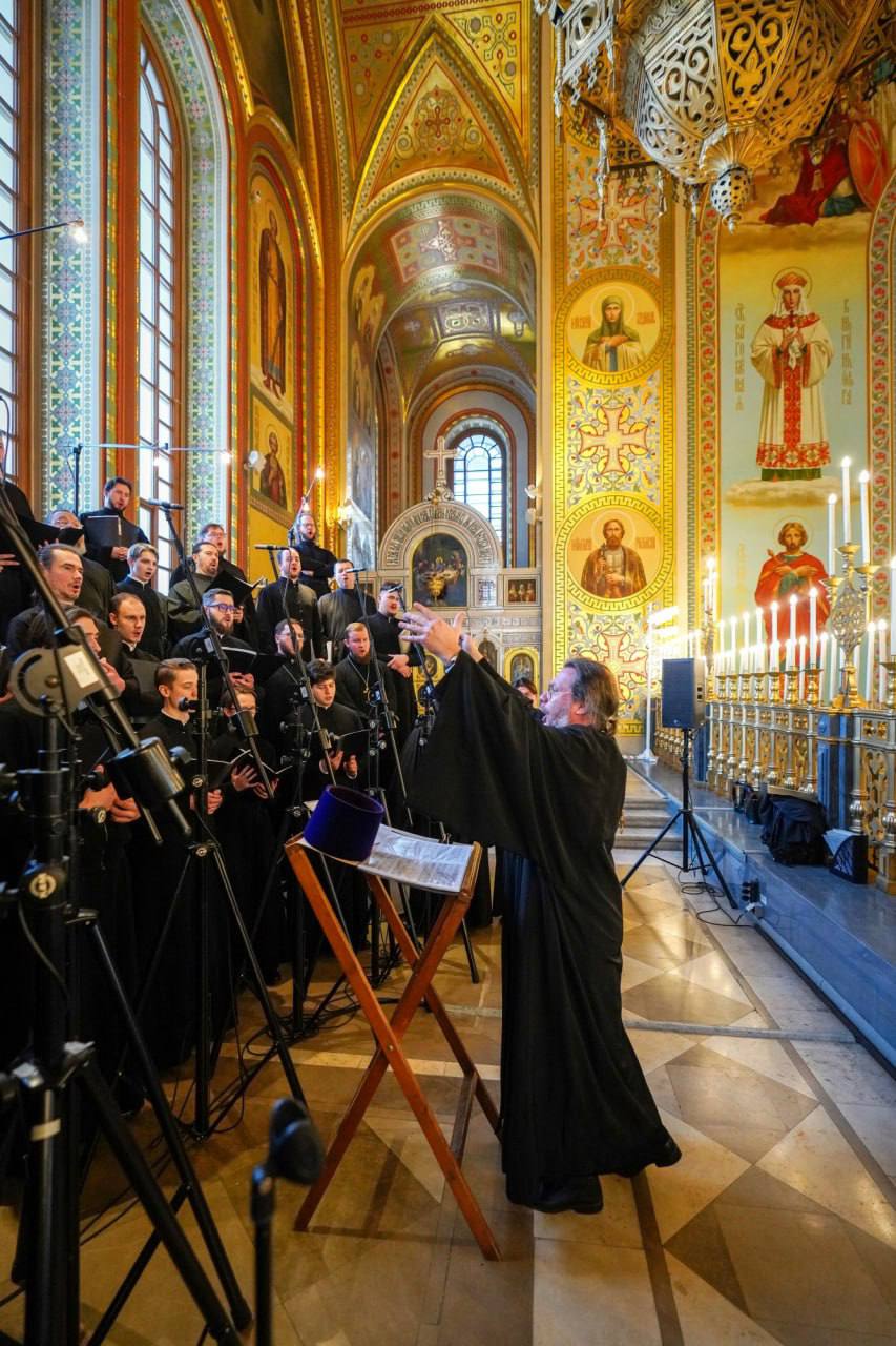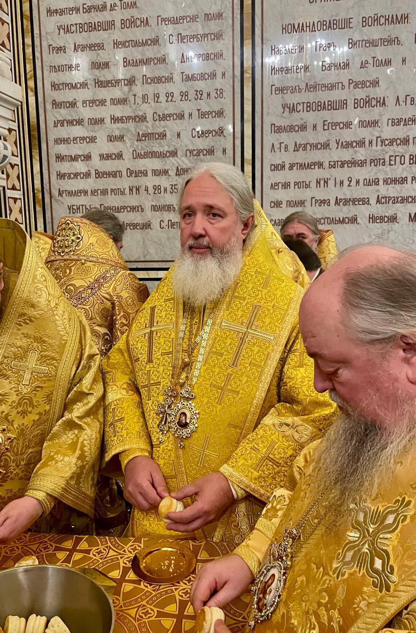 На сугубой ектении были вознесены особые прошения о Святой Руси, а также прошения о чествуемом Святейшем Патриархе Кирилле и Церкви Русской.
