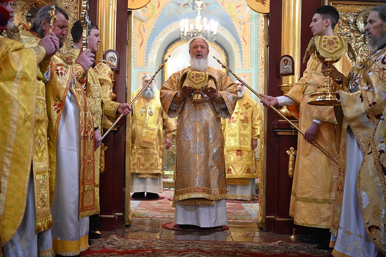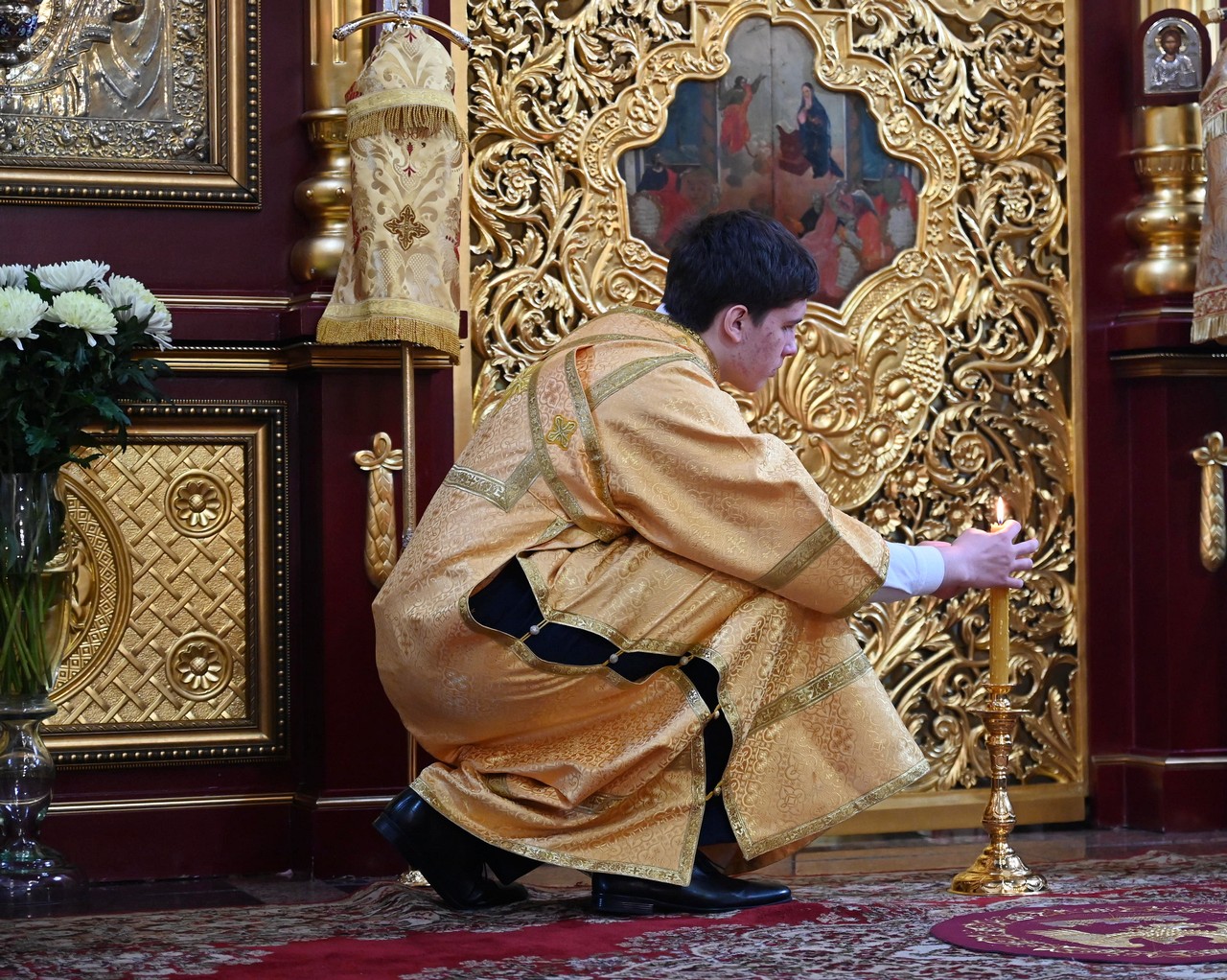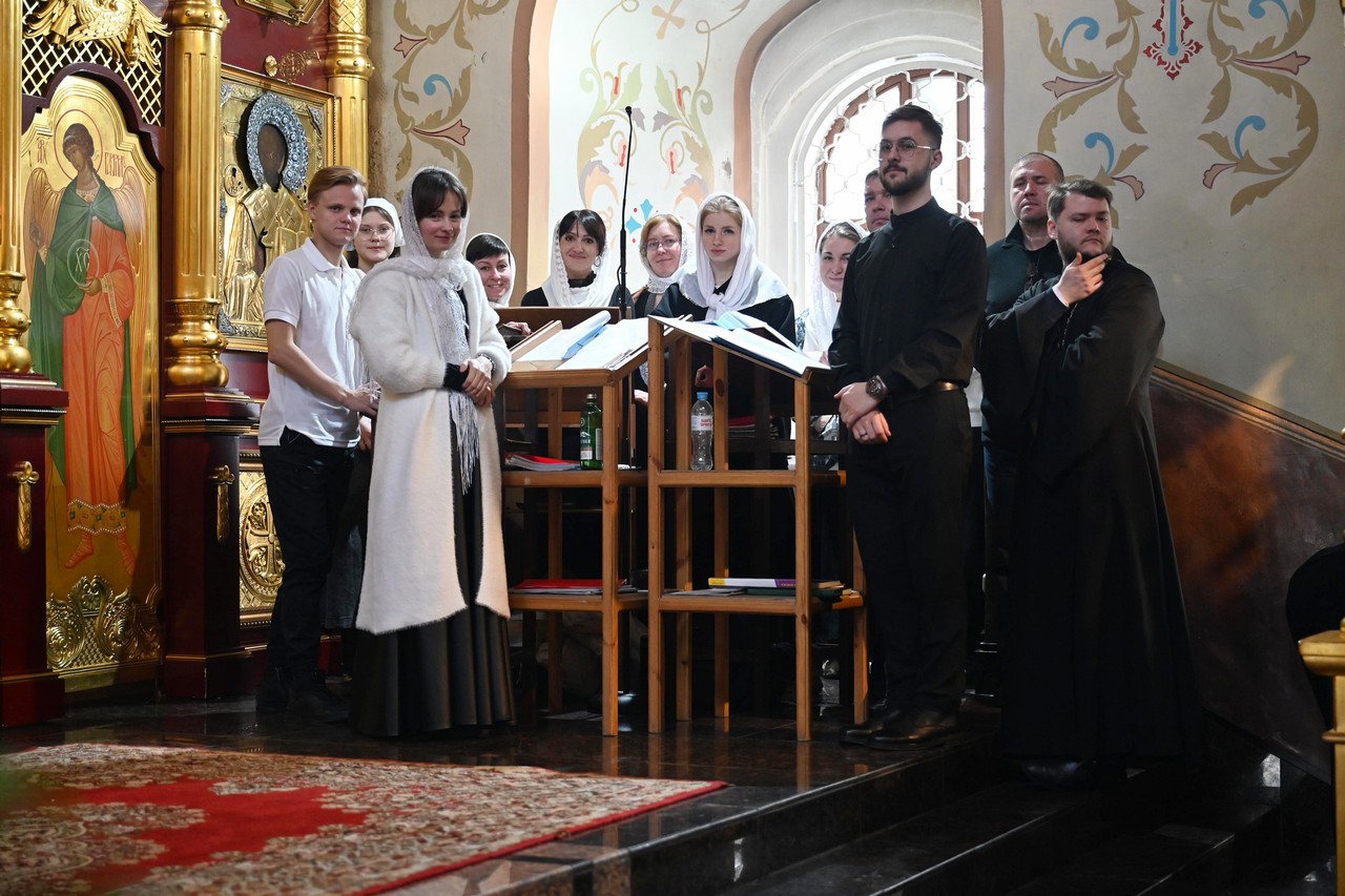 Песнопения Божественной литургии прозвучали в исполнении архиерейского хора Богоявленского кафедрального собора под управлением Ксении Званаревой.