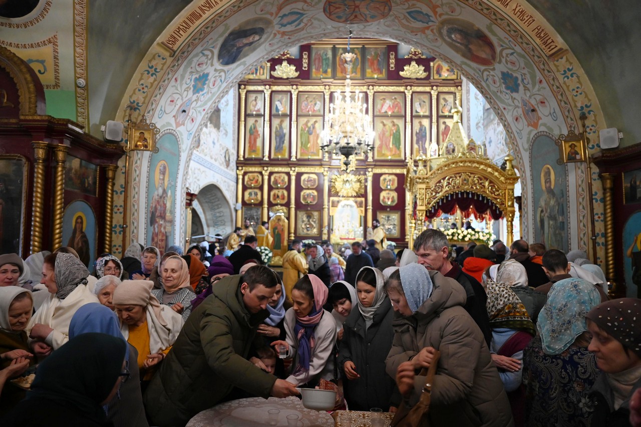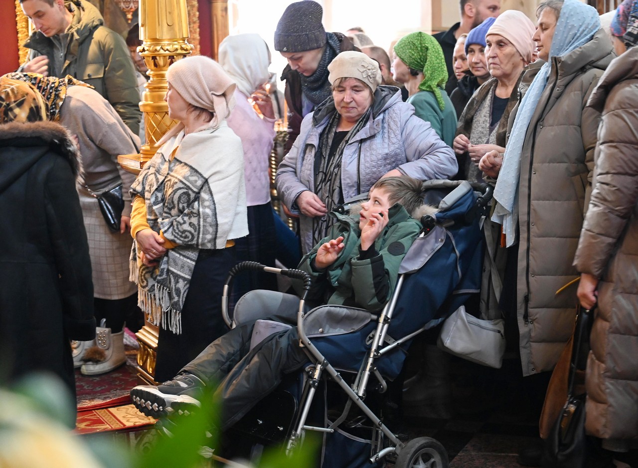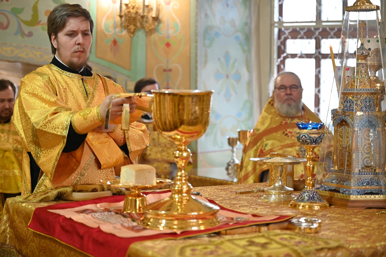Песнопения Божественной литургии прозвучали в исполнении архиерейского хора Богоявленского кафедрального собора под управлением Ксении Званаревой.