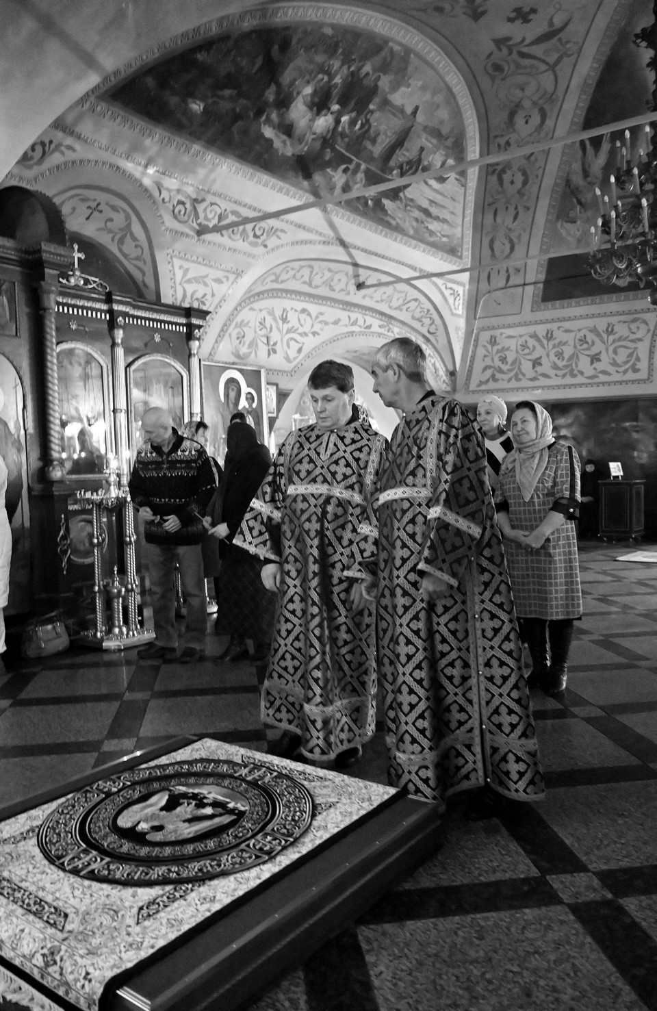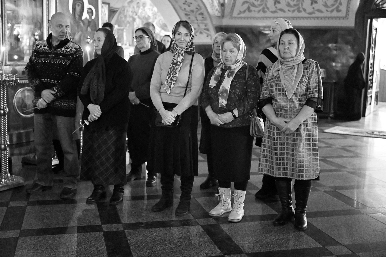 Богослужебные песнопения вечерни и ирмосы Великого Покаянного канона прозвучали в исполнении клироса Знаменского собора под управлением матушки Екатерины Телегиной.