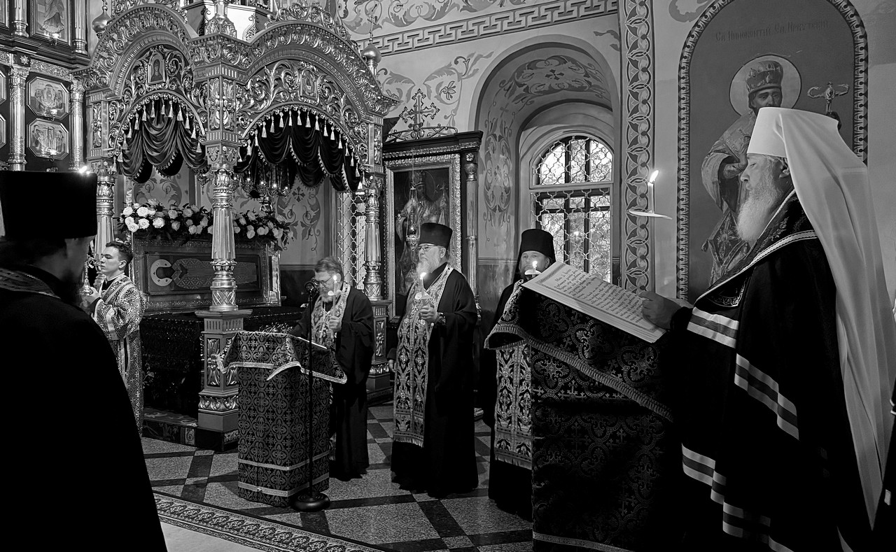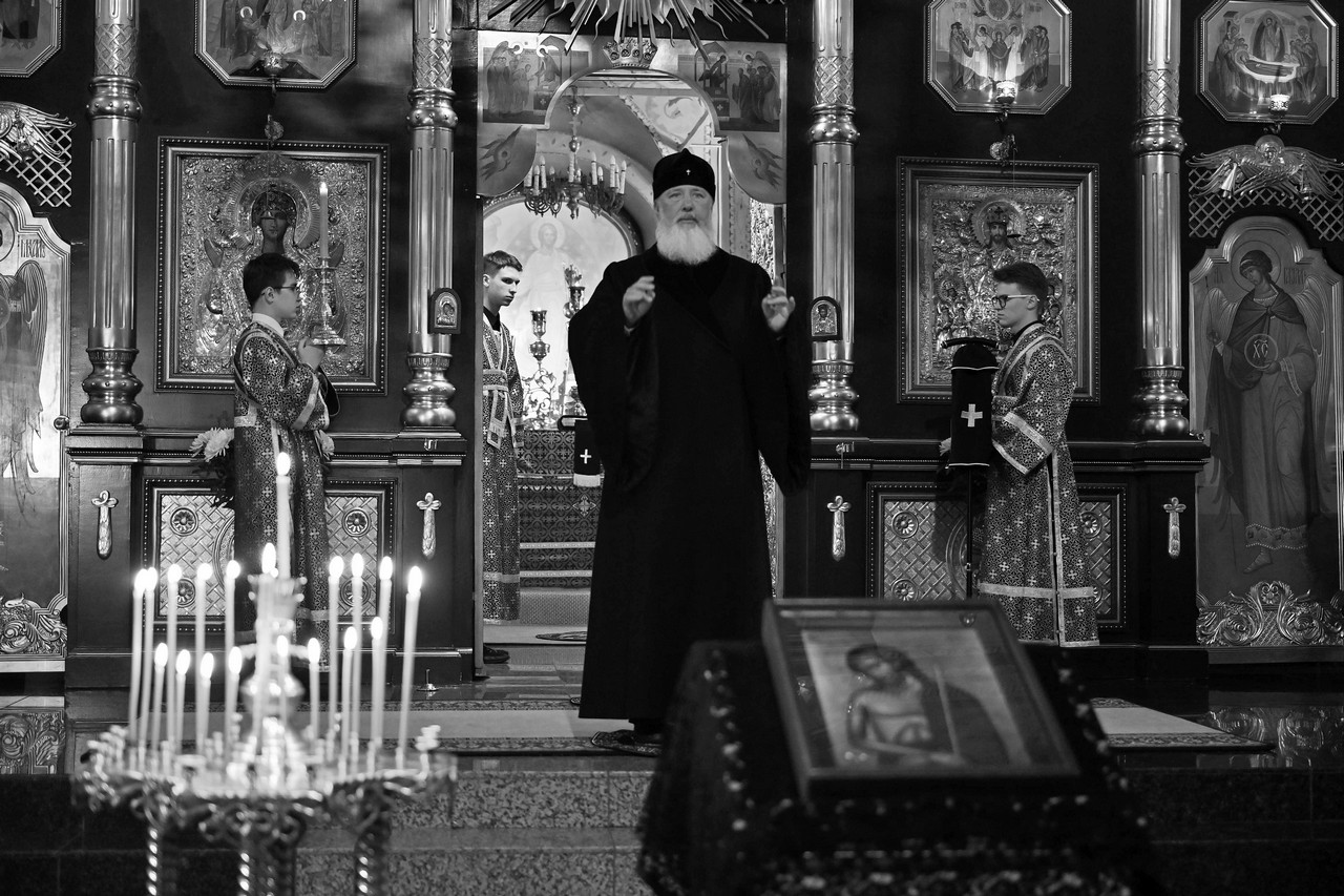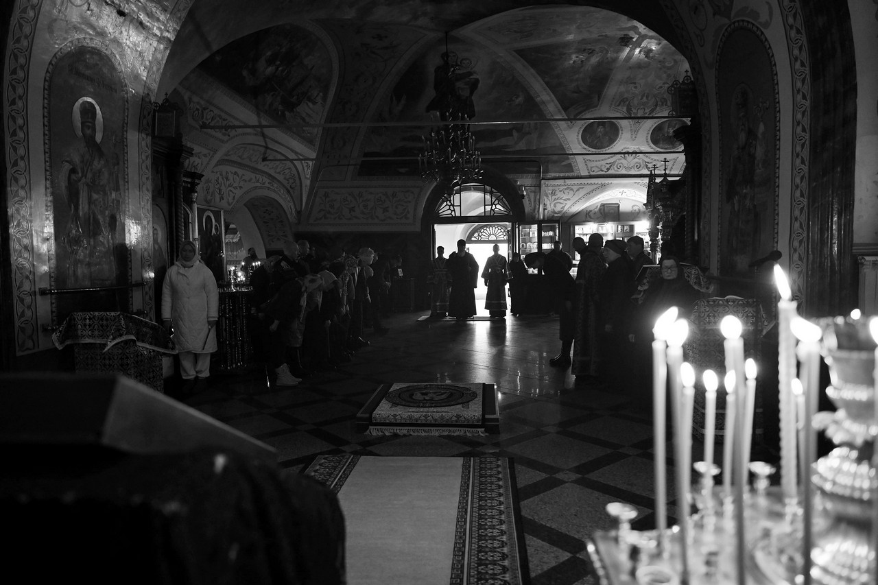 Первое чтение Великого Покаянного канона святого преподобного Андрея Критского 23 февраля 2026 года, в понедельник первой седмицы Великого поста, митрополит Иркутский и Ангарский Максимилиан совершил в Знаменском монастыре города Иркутска, где он молился и утром.