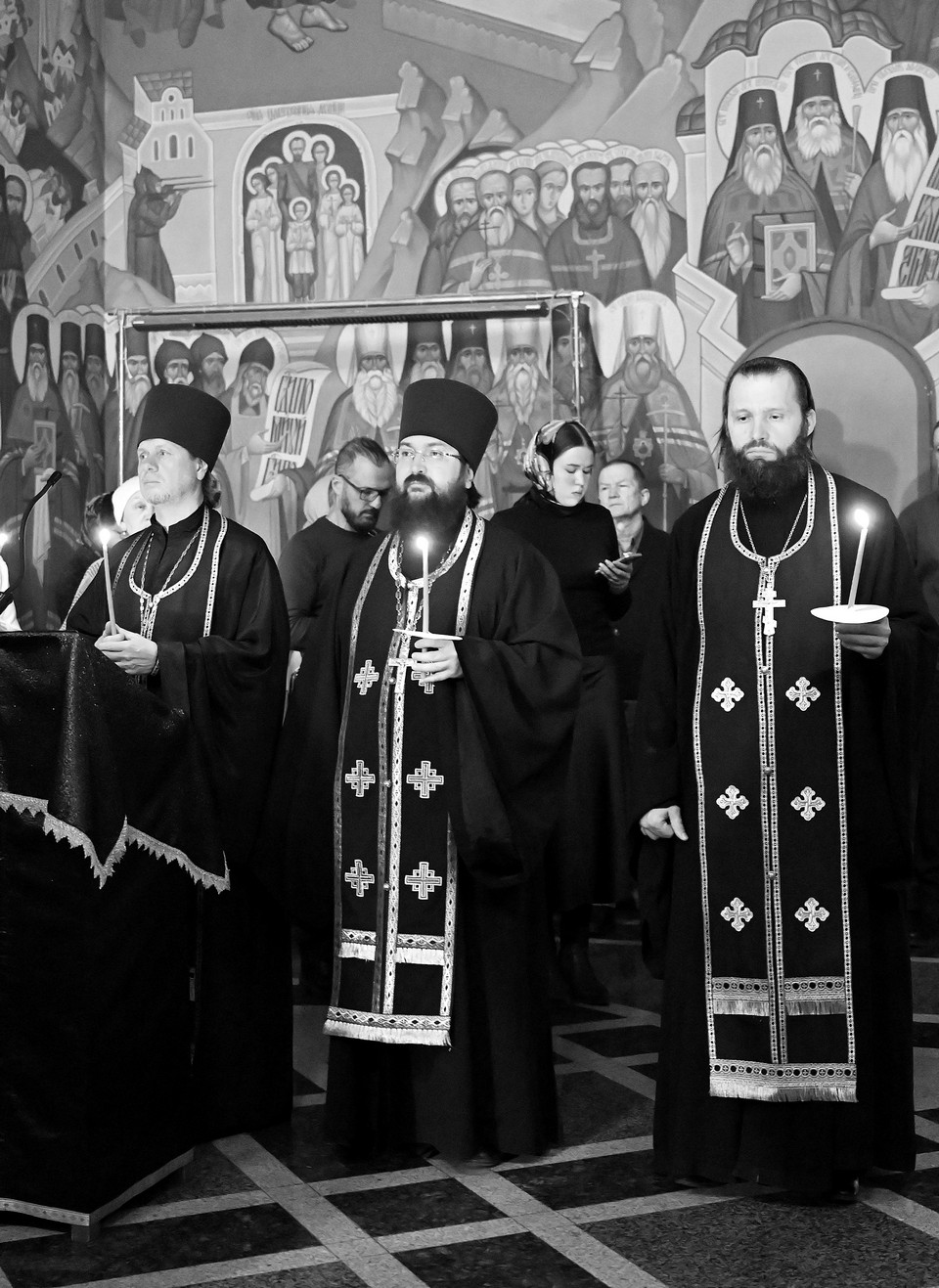 Высокопреосвященнейшему владыке сослужили ключарь собора, секретарь Иркутской епархии священник Стефан Бажков, протоиерей Андрей Тарасов, протоиерей Андрей Коробов, священник Григорий Гудин, священник Евгений Копытов и священник Вячеслав Куприянов.